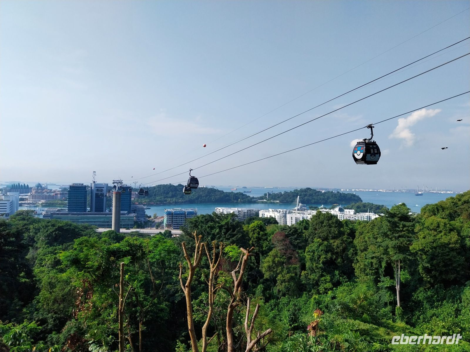 Per Seilbahn fahren wir dann in ca. 100 m Höhe über das Meer zur Insel Sentosa.