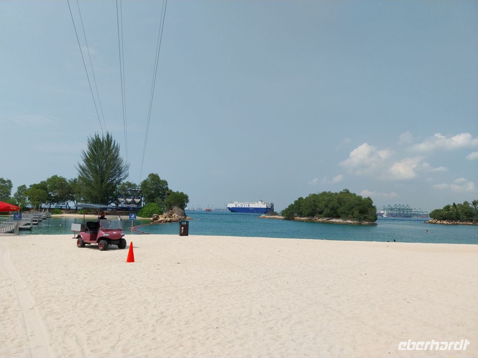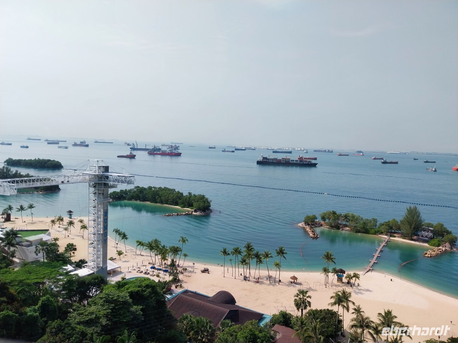 Wir wechseln die Seilbahn und fahren in Richtung Fort Siloso. Der Ausblick lässt uns bereits vom Strandfeeling träumen.