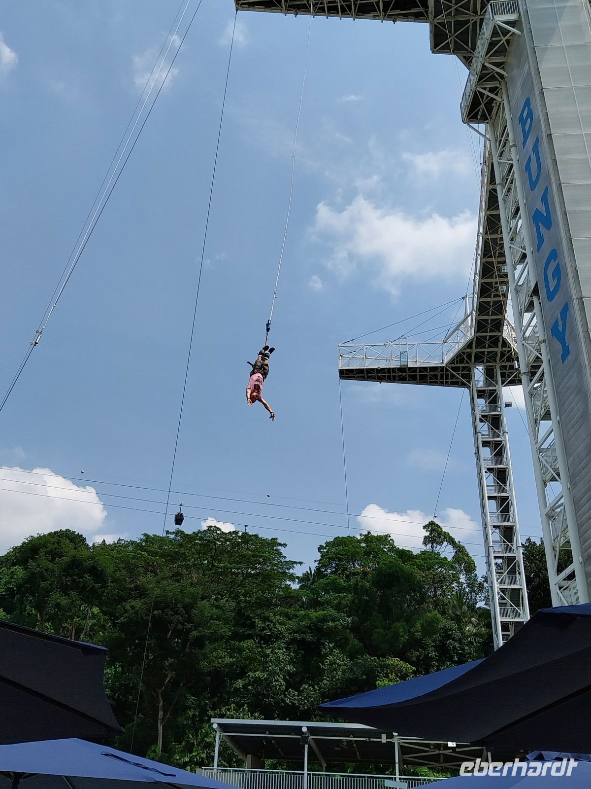 Anschließend spazieren wir zum Strand, genießen das warme Meereswasser und schauen Frank bei seinem Bungee-Jump aus 47m Höhe zu.