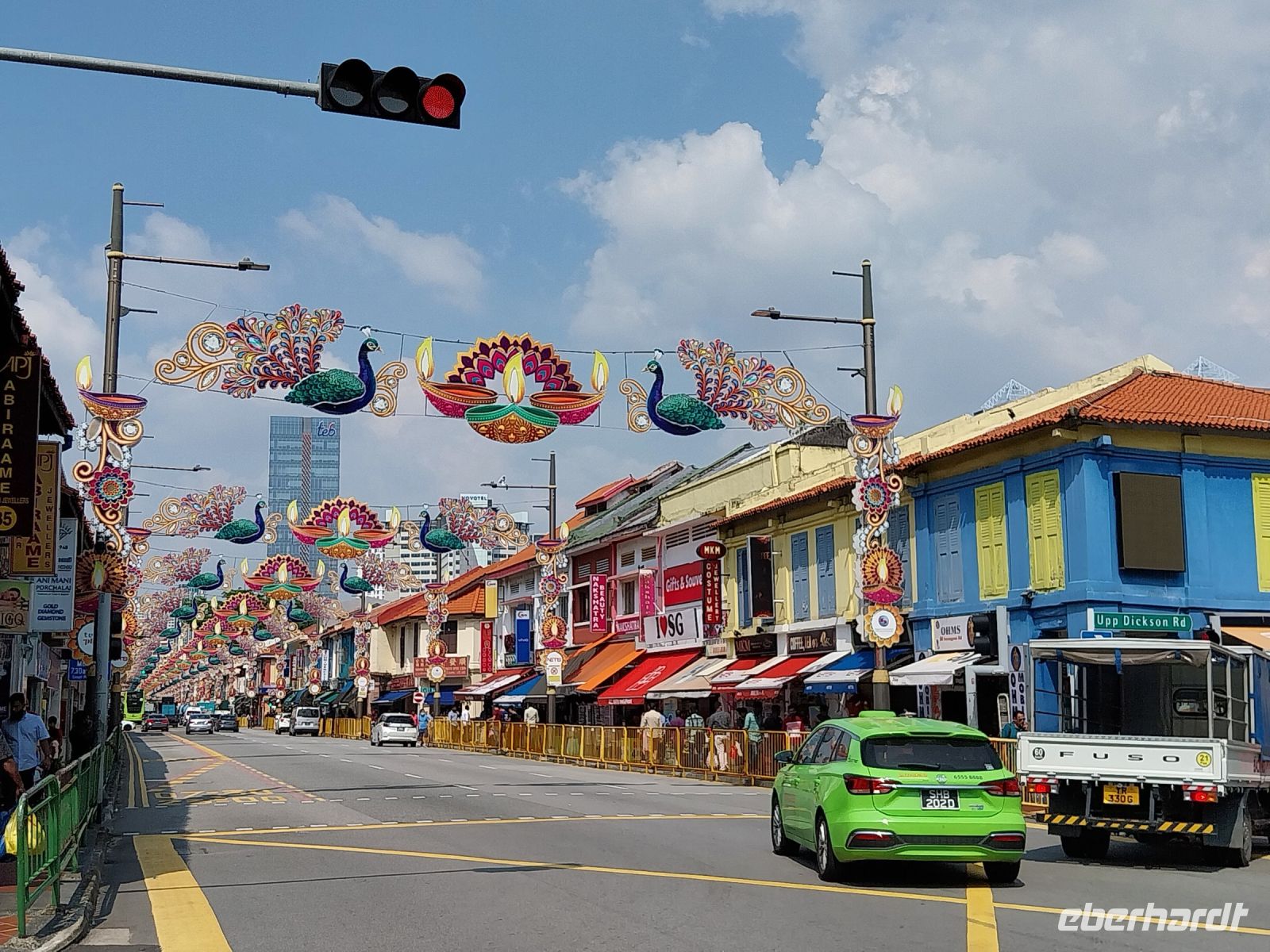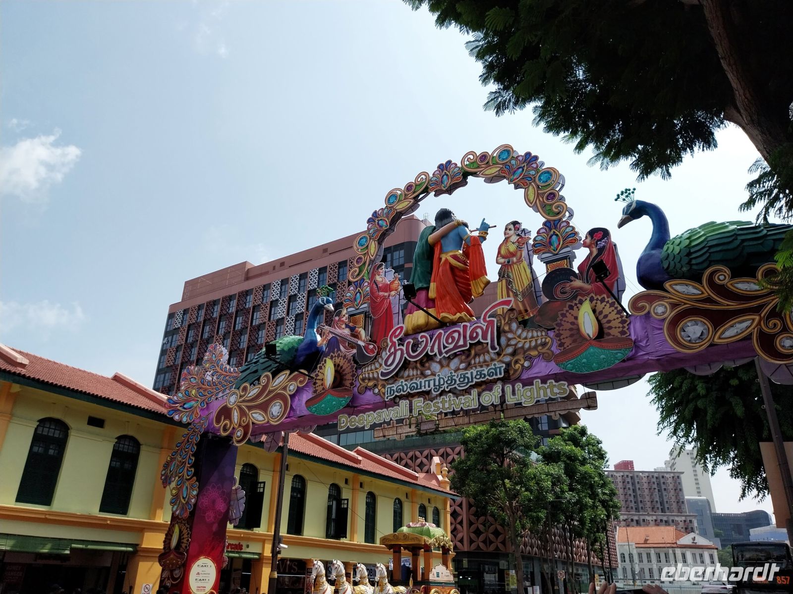 Mit dem Sentosa-Express fahren wir dann bis zu den Universal Studios und von hier per Bus nach Little India. Aufgrund des anstehenden Deepavali Festivals ist sehr viel los.