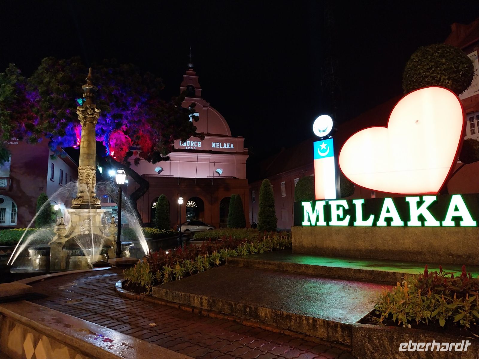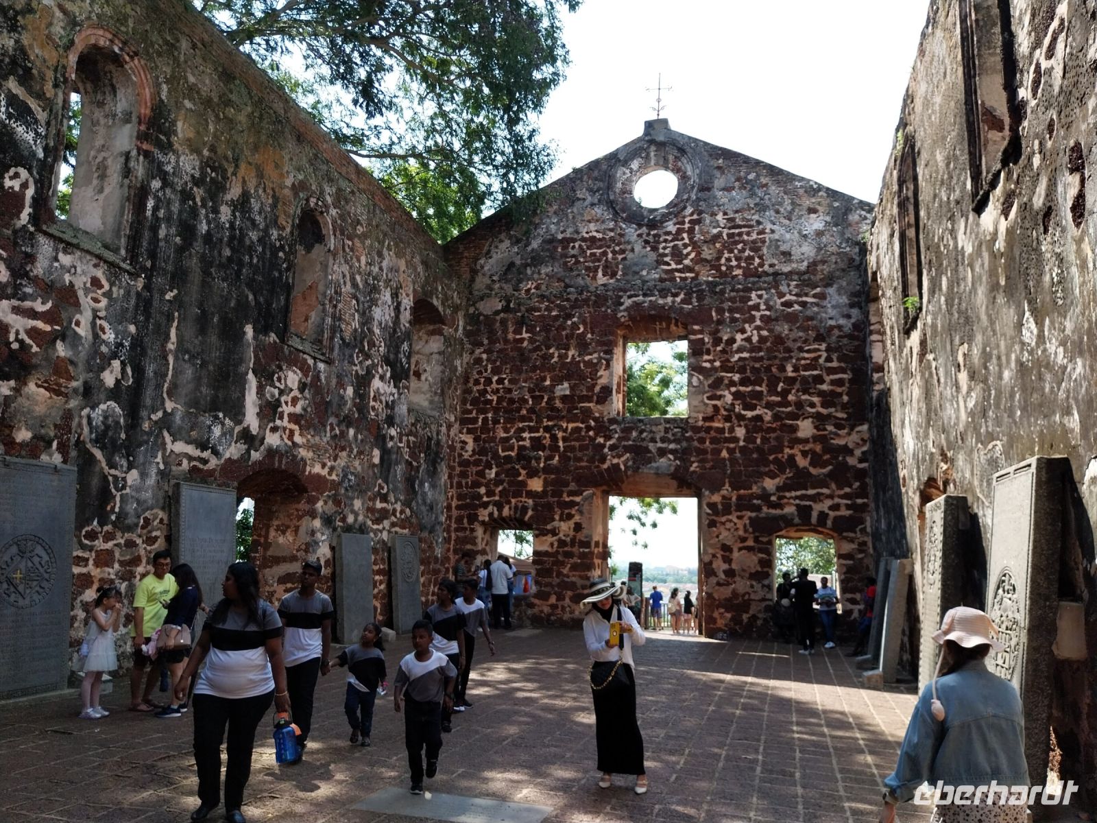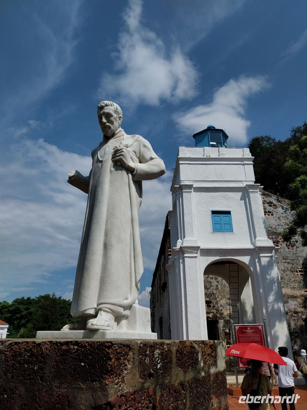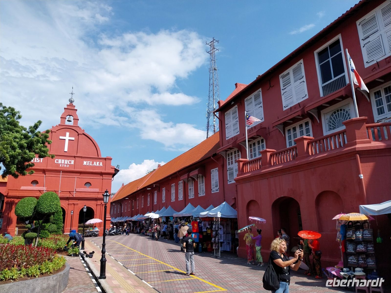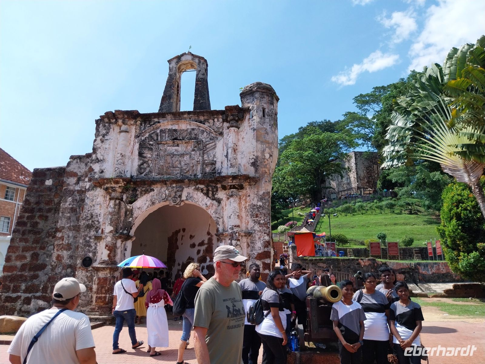 Gegen Mittag erreichen wir unser Tagesziel. Die UNESCO-Welterbestadt erkunden wir zu Fuß. Zuerst sehen wir das Unabhängigkeitsdenkmal/-gebäude. Anschließend führen uns zahlreiche Stufen zur ehemaligen portugiesischen Festung A Formosa. Wir besichtigen die Ruine der St.-Pauls-Kirche und sehen u. a. sehr alte Grabsteine in niederländischer Sprache. Zul führt uns weiter zum Malakka Fluss. Hier sehen wir das alte Rathaus der ehemaligen holländischen Kolonialherren, den Uhrenturm, eine Kirche, einen Hindutempel, eine Moschee und den grünen Wolkentempel der chinesischen Glaubensgemeinschaft. Wir verfolgen gespannt den Erklärungen und sehen, dass ein friedliches Zusammenleben der verschiedenen Religionen möglich ist.
