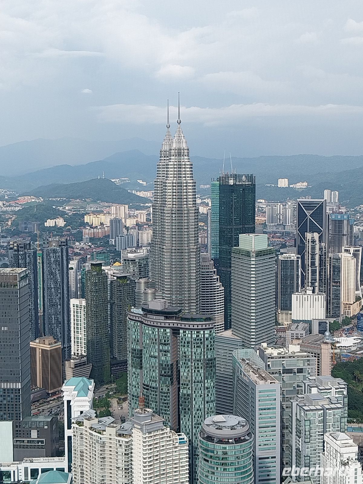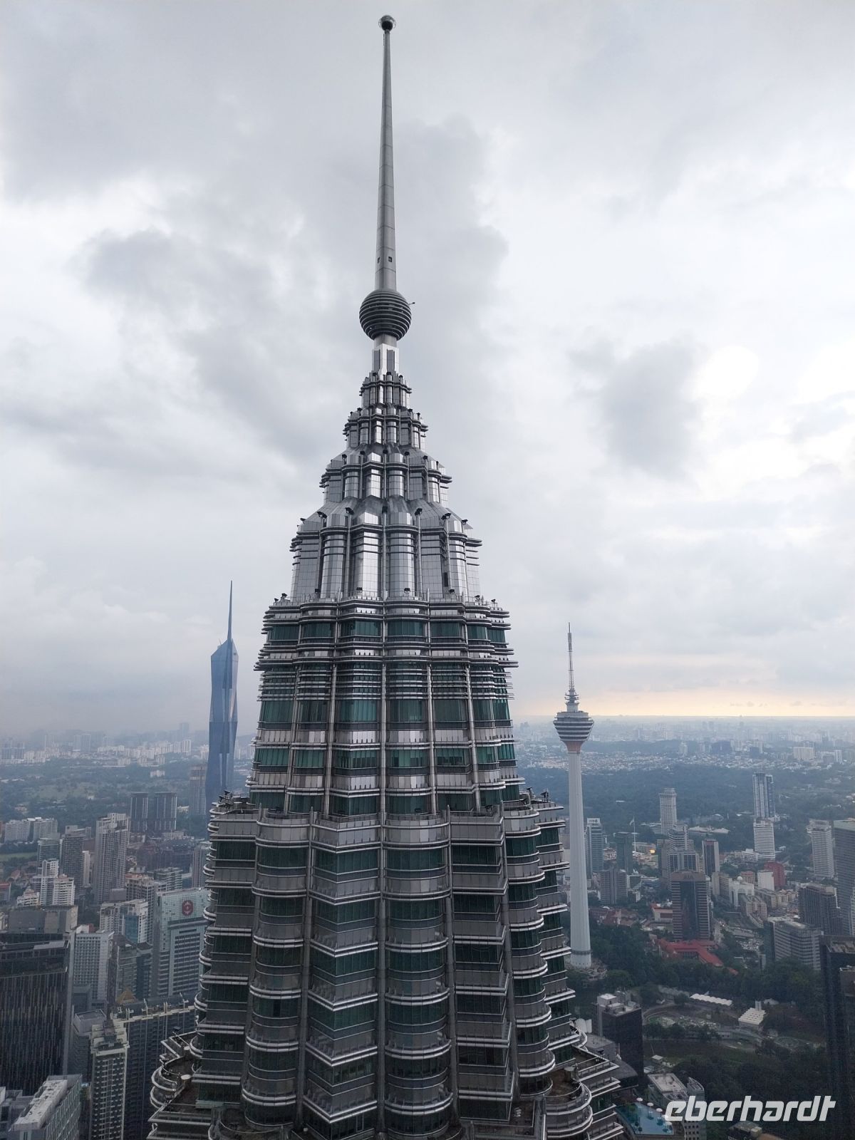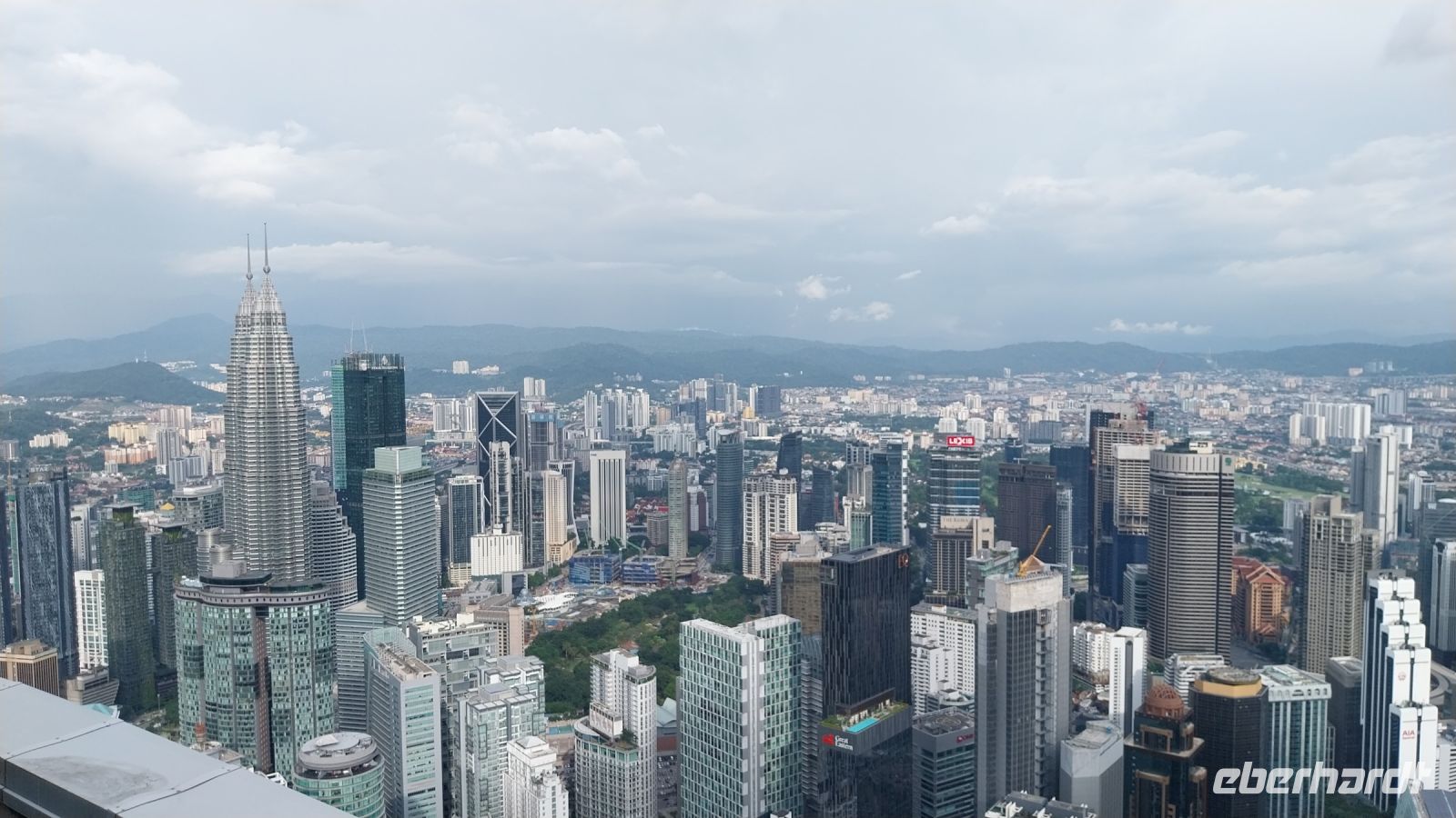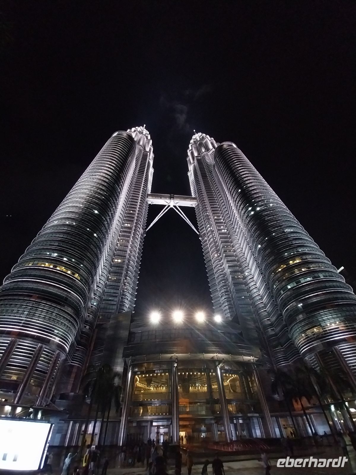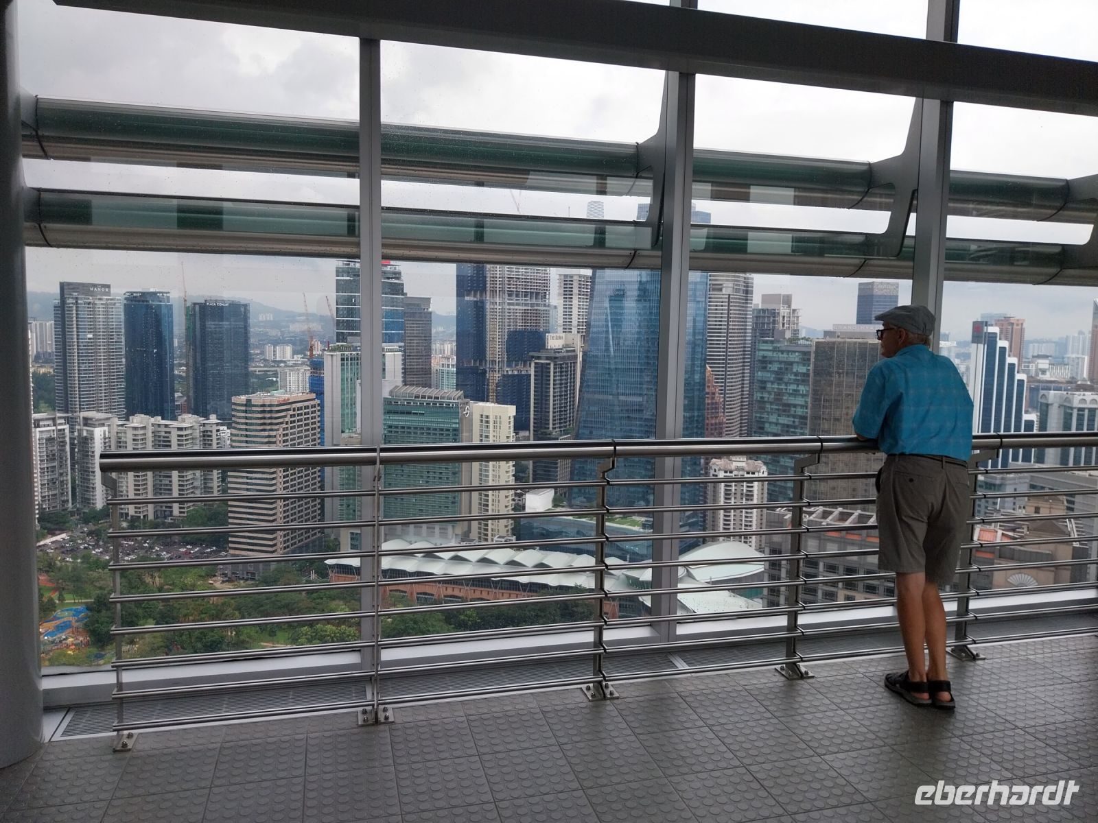Wir schauen uns zunächst das Einkaufszentrum und den dahinter liegenden Park an, bevor wir 17 Uhr die eigentlichen Zwillingstürme besichtigen dürfen. Zunächst fahren wir zur Skybridge, welche beide Hochhäuser auf der 41. und 42. Etage in 170 m Höhe verbindet.