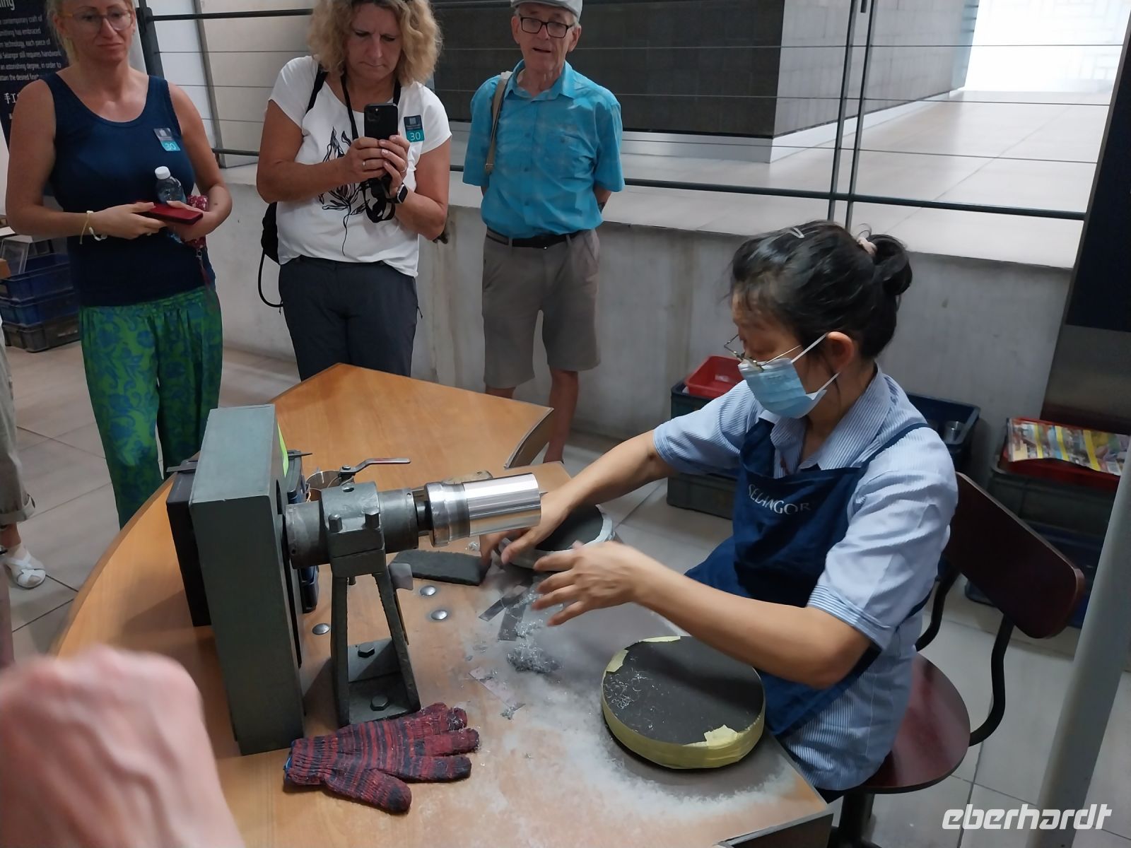 Den Reichtum Kuala Lumpurs verdankt die Stadt dem früheren Zinnabbau. Daher schauen wir als nächstes eine Zinnwerkstadt mit einem kleinen dazugehörigen Museum an und erfahren viel über Geschichte und Herstellung.