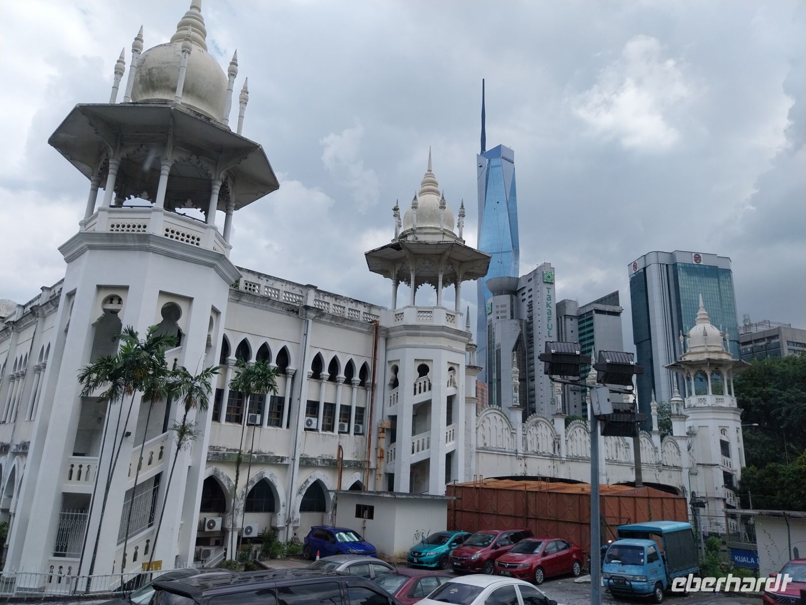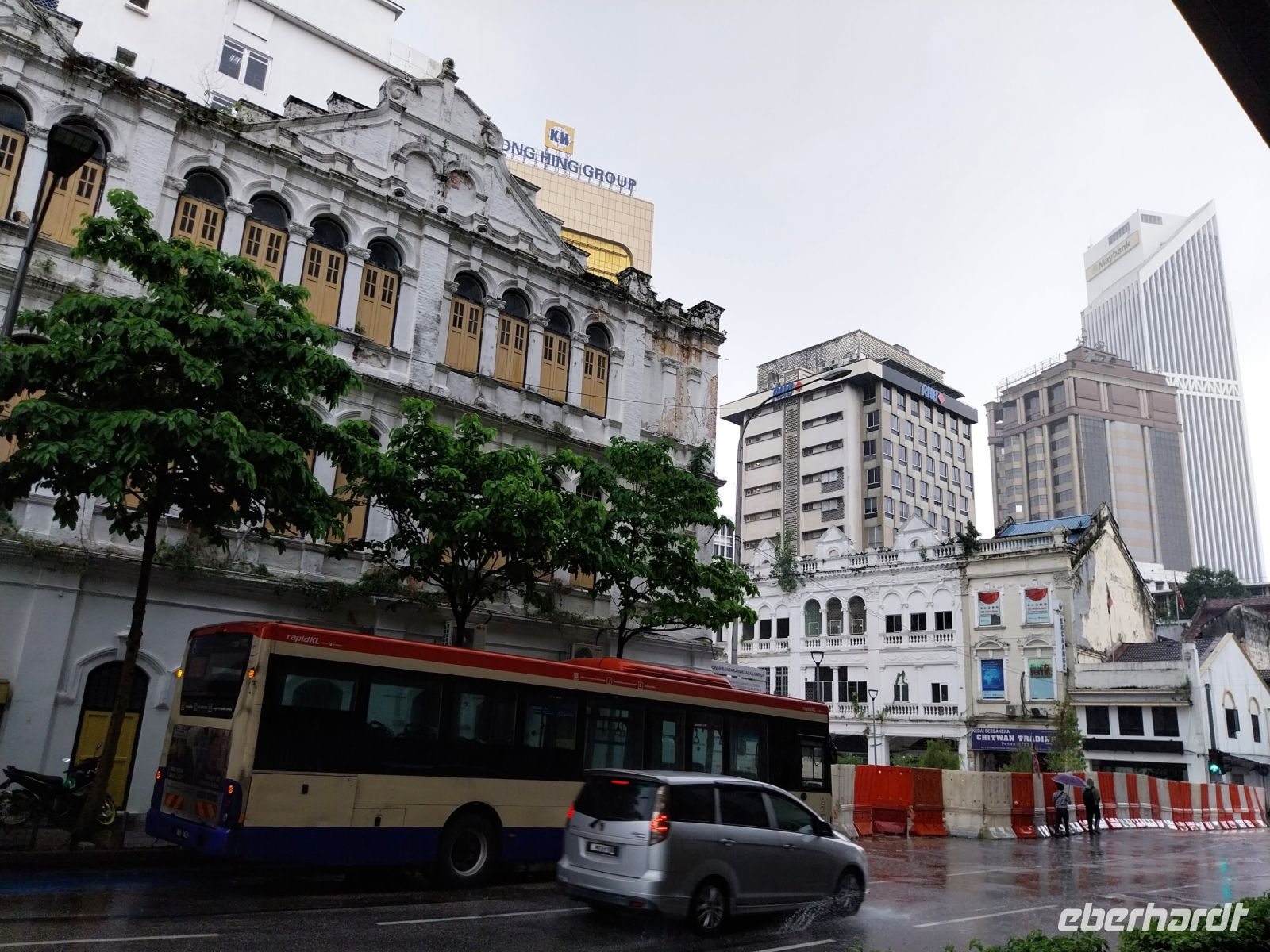 Wir sehen den hinduistischen Sri Maha Mariammam und taoistischen Sin Sze Si Ya Tempel. Außerdem sehen wir noch einige Häuser aus der Kolonialzeit. Da der Regen leider immer stärker wird, stellen wir uns anfangs unter und lassen uns schließlich vom Bus abholen, welcher uns zu den Petronas Towers bringt.