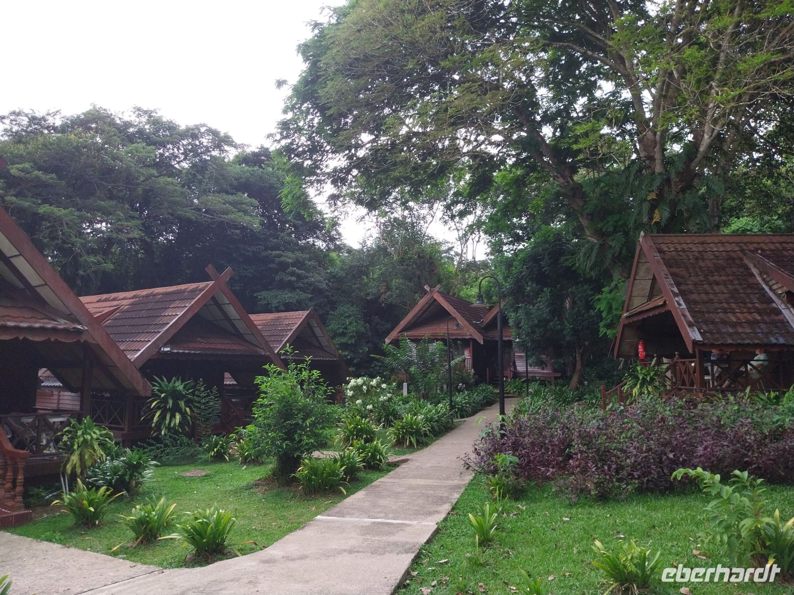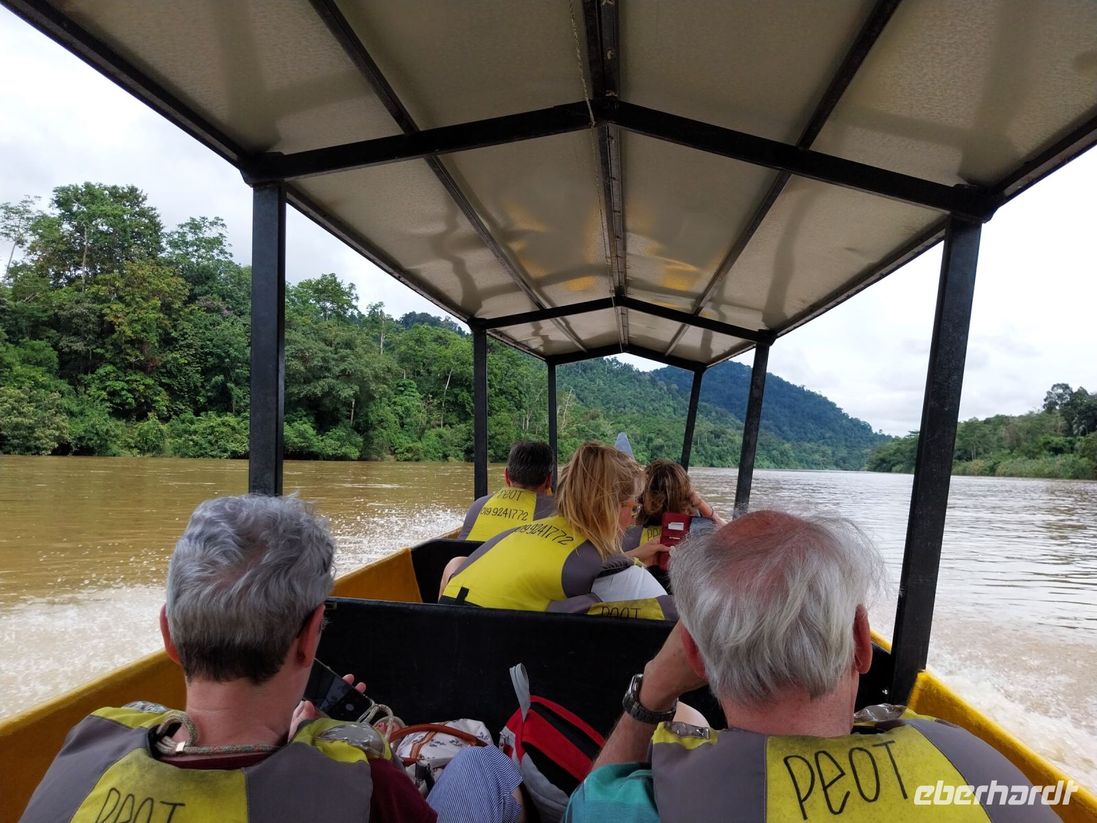 Aufgrund des einsetzenden Regens geht es in nur kleiner Gruppe zu Fuß am Fluss entlang zum Hotel zurück.