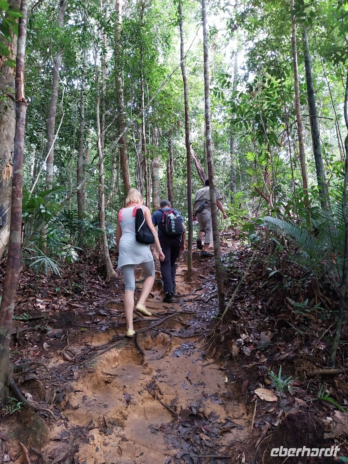 Nach dem Frühstück treffen wir uns für eine Wanderung zum Terisek Hill. Mit unseren Rangern und interessanten Erklärungen zu Bäumen und Natur überwinden wir die 250 Höhenmeter. Auch wenn ein paar Wolken den Blick zum höchsten Berg der Malaiischen-Halbinsel versperren, genießen wir die Aussicht auf den riesigen Nationalpark.