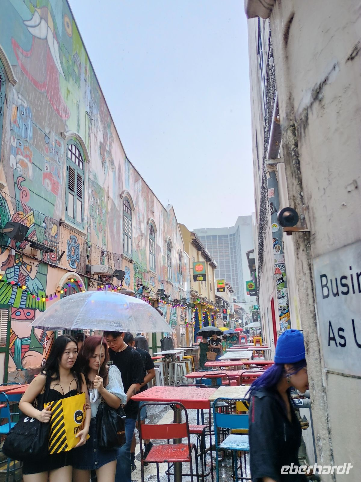 Unser Morgen in Georgetown beginnt mit einem Stadtspaziergang. Wir starten vom Hotel und gehen vor bei am Eastern & Oriental Hotel, eins der ersten Hotels in Georgetown. Während wir durch Chinatown gehen, überqueren wir auch einen Markt mit Lebensmittel. Während draußen Gemüse und Obst gekauft werden kann, werden in den Hallen rechts der Fisch gehäutet und links das Huhn in einzelne Stücke zerlegt. Für die Asiaten normal für uns eine eher ungewöhnliche Sache. An einem kleinen Stand in einer Nebenstraße wird Cendol gemacht, ein typisches Malaysisches Dessert, was aus Eisraspeln besteht und mit Kokosmilch, Palmzucker und grünen Gelee Nudeln, die nach Pandan schmecken, serviert wird. Einige holen sich eine Kostprobe und wir sind erstaunt, dass dieser Stand sogar im Michelin Reiseführer gelistet wird.