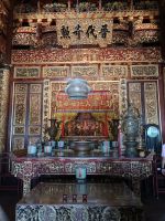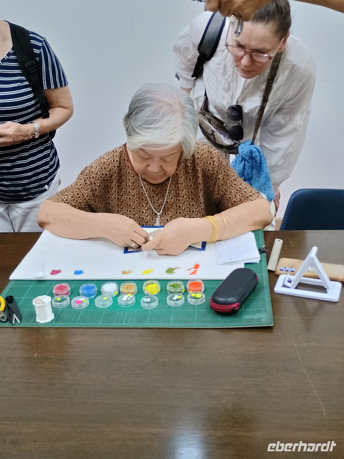 Während unseren Spaziergang geht, es für uns auch in verschiedene Werkstätte, so sehen wir wie in einer Fabrik Gegenstände aus Holz und Papier angefertigt wird, dies wird von den Chinesen gekauft oder bestellt und dann verbrannt. Denn mit der Verbrennung schickt man den Gegenstand wie zum Beispiel eine Tasche, Auto oder Gitarre zu seinen liebsten in die Welt der Toten. Wir gehen weiter zu Harmony Straße, die ihren Namen daher bekommen hat, da auf einer Straße sowohl eine Moschee, ein hinduistischer Tempel, ein buddhistischer Tempel und eine katholische Kirche befinden und alle in Harmonie miteinander existieren und leben. Sicherlich ein Highlight für alle war der Besuch bei Frau Lim, eine Schuhmacherin, die mit Perlenstickereien Schuhe und andere Accessoires verziert. Sie ist weltweit bekannt und der Schuhmacher, der mit ihr zusammenarbeitet, ist der Sohn vom Schuhmacher von Jimmy Choo. Auch für den vorherigen Malaysischen König hat Sie ein Hemd designt. Heute ist sie allerdings im Ruhestand und gibt ihr Wissen nur noch an ihre Schüler, die aus der ganzen Welt kommen, weiter.