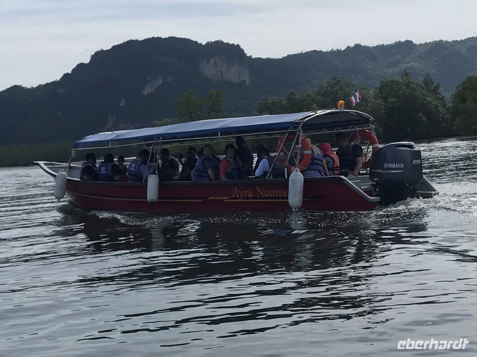 Heute ging es auf eine Bootsfahrt über den Fluss mit zahlreichen Ausstiegen und Wanderungen. Trotz der starken Strömung aufgrund der starken Regenfälle vom Vorabend, konnte man sogar etwas im Wasser baden.