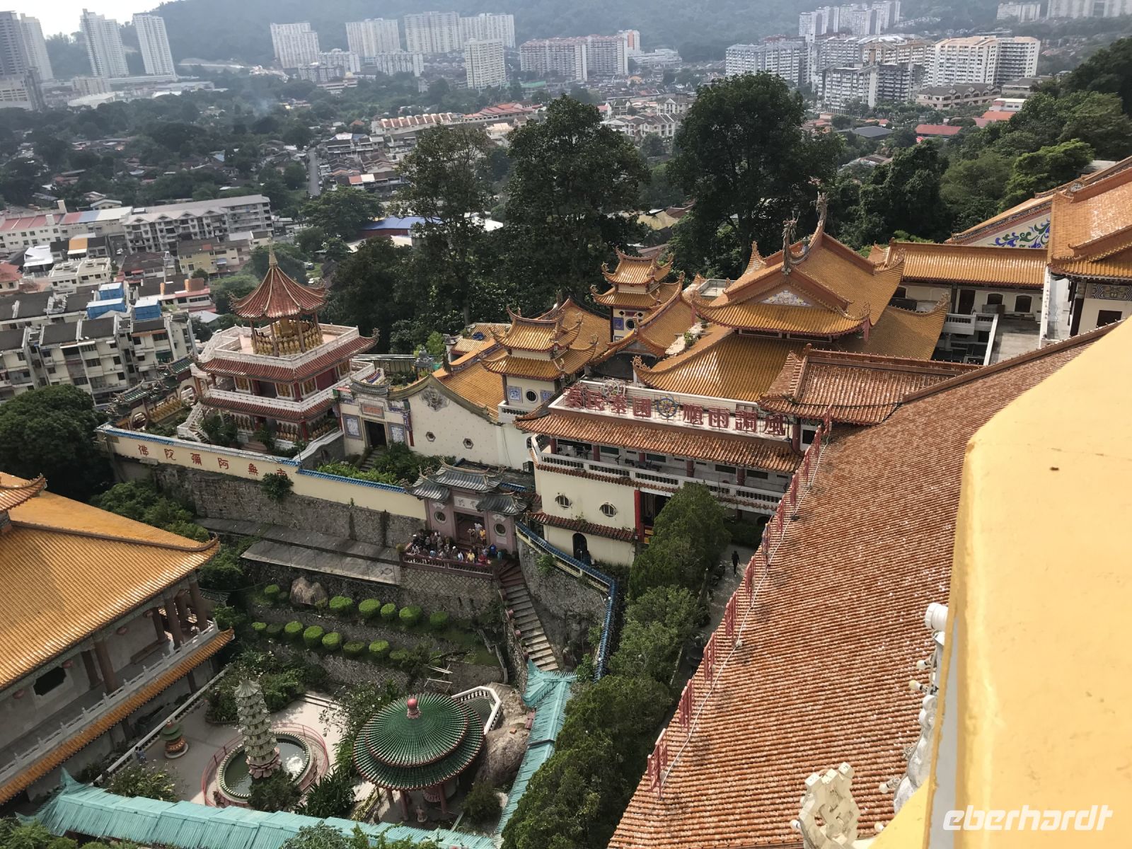 Nach dem Frühstück besichtigten wir die schöne, auf einem Hügel gelegene Tempelanlage Kek-Lok-Sie. Der Treppenaufstieg brachte die meisten von uns bei den heißen Temperaturen so mächtig ins Schwitzen.