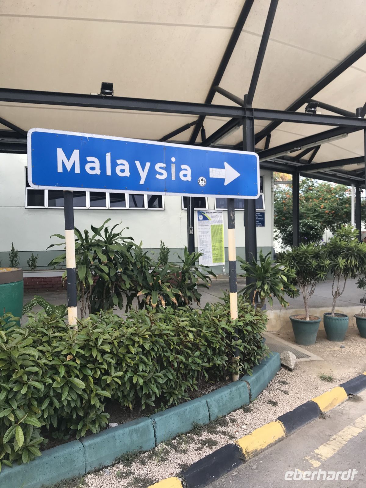 Nach dem Frühstück fuhren wir gemeinsam mit unserer Reiseleiterin Bibi bis zur Grenze nach Malaysia.