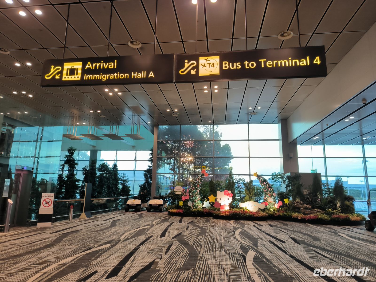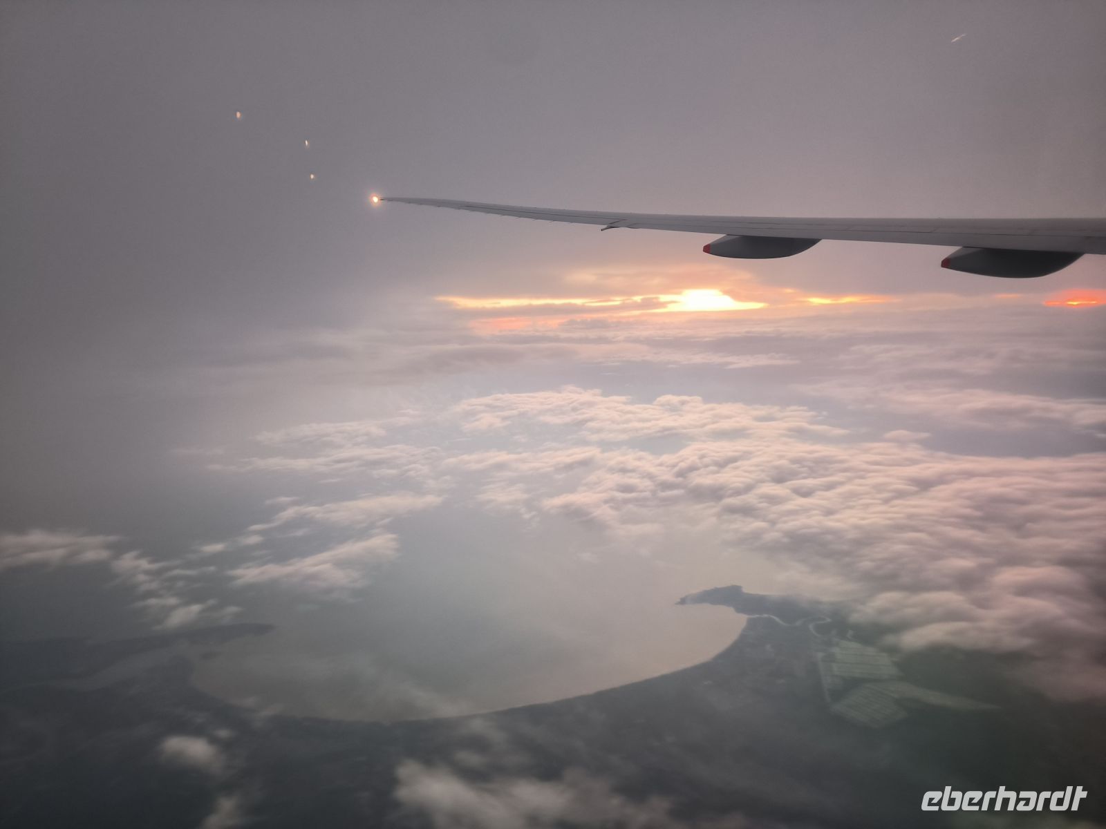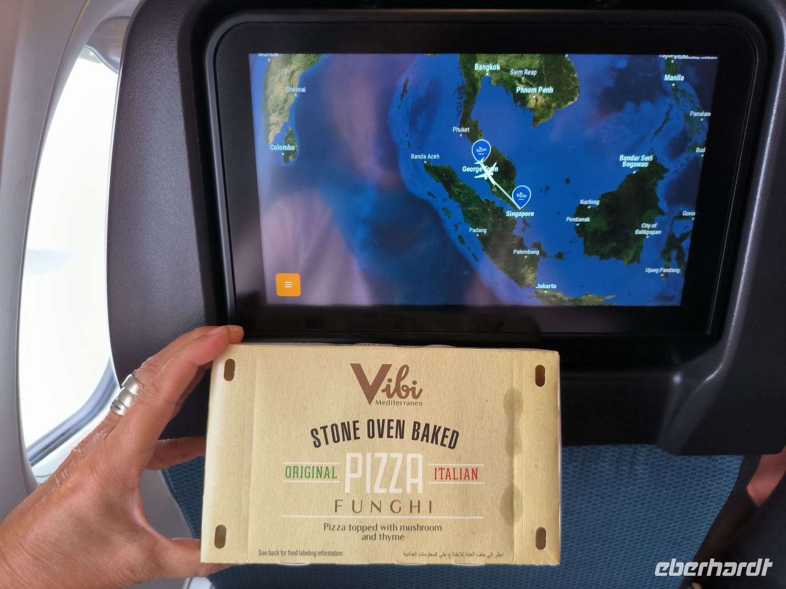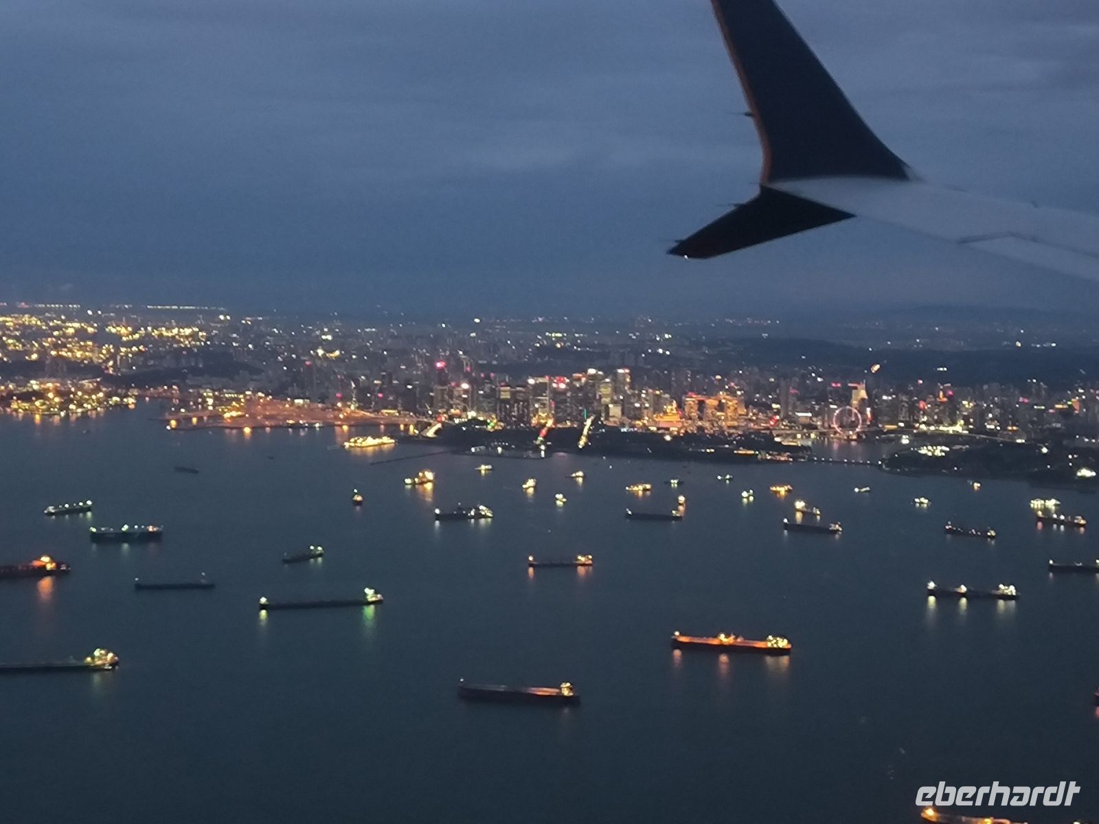 Check in, Boarding und Abflug verlaufen problemlos und pünktlich. Im Flugzeug können wir die Flugstrecke verfolgen, das Bord Entertainment bietet verschiedene Filme zur Auswahl und das wunderschöne Bordpersonal bewirtet uns freundlich. Trotzdem ziehen sich natürlich zwölf Stunden Flugzeit, bis wir – mit sieben Stunden Zeitverschiebung – am sehr frühen Morgen endlich in Singapur landen.