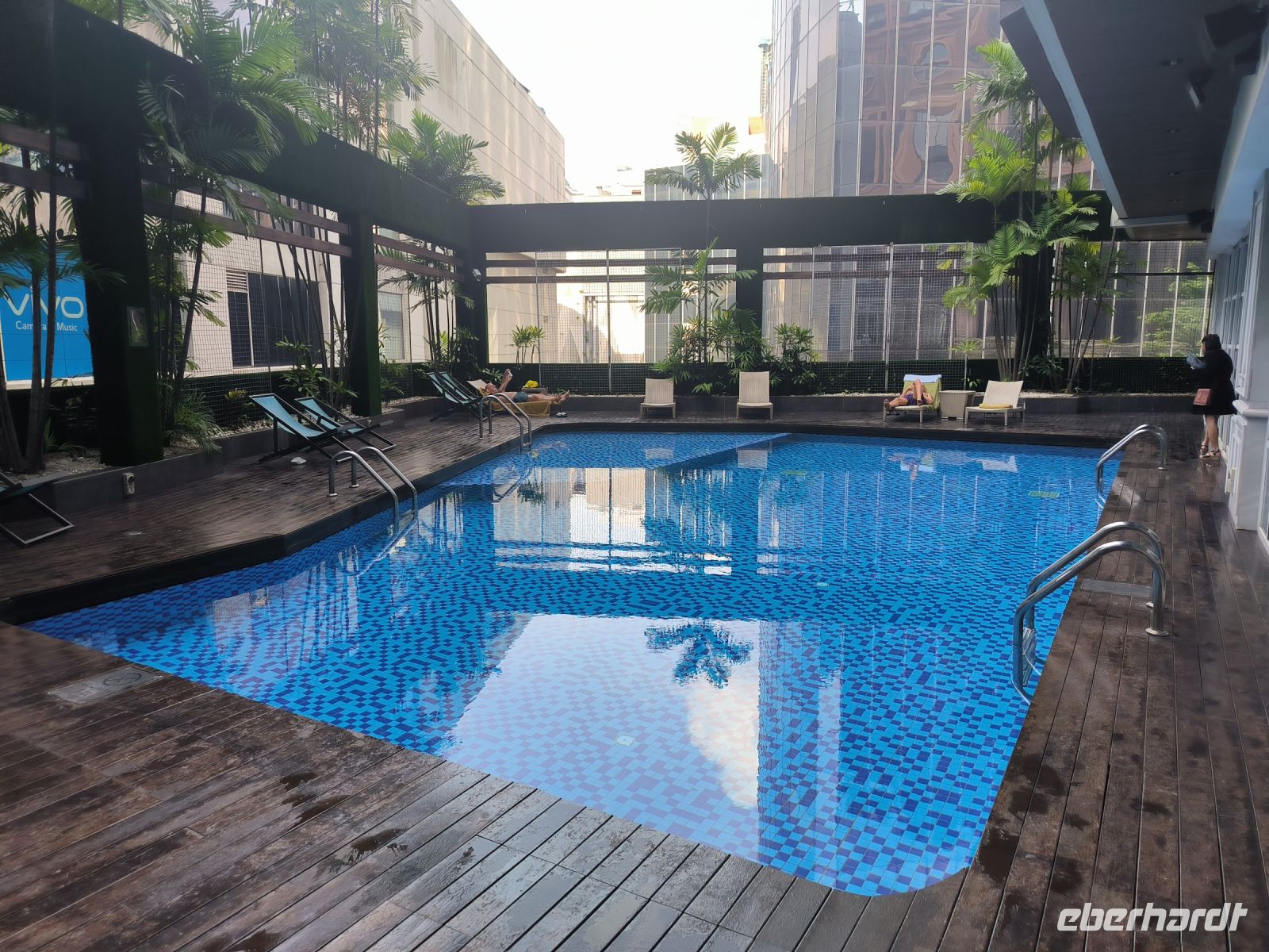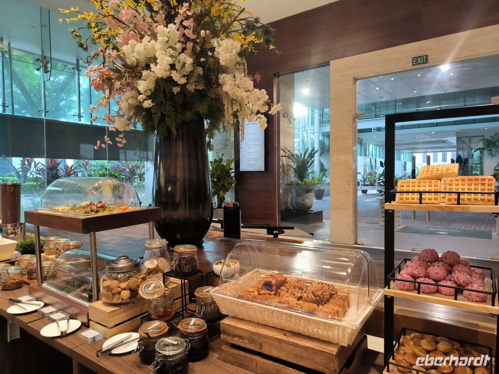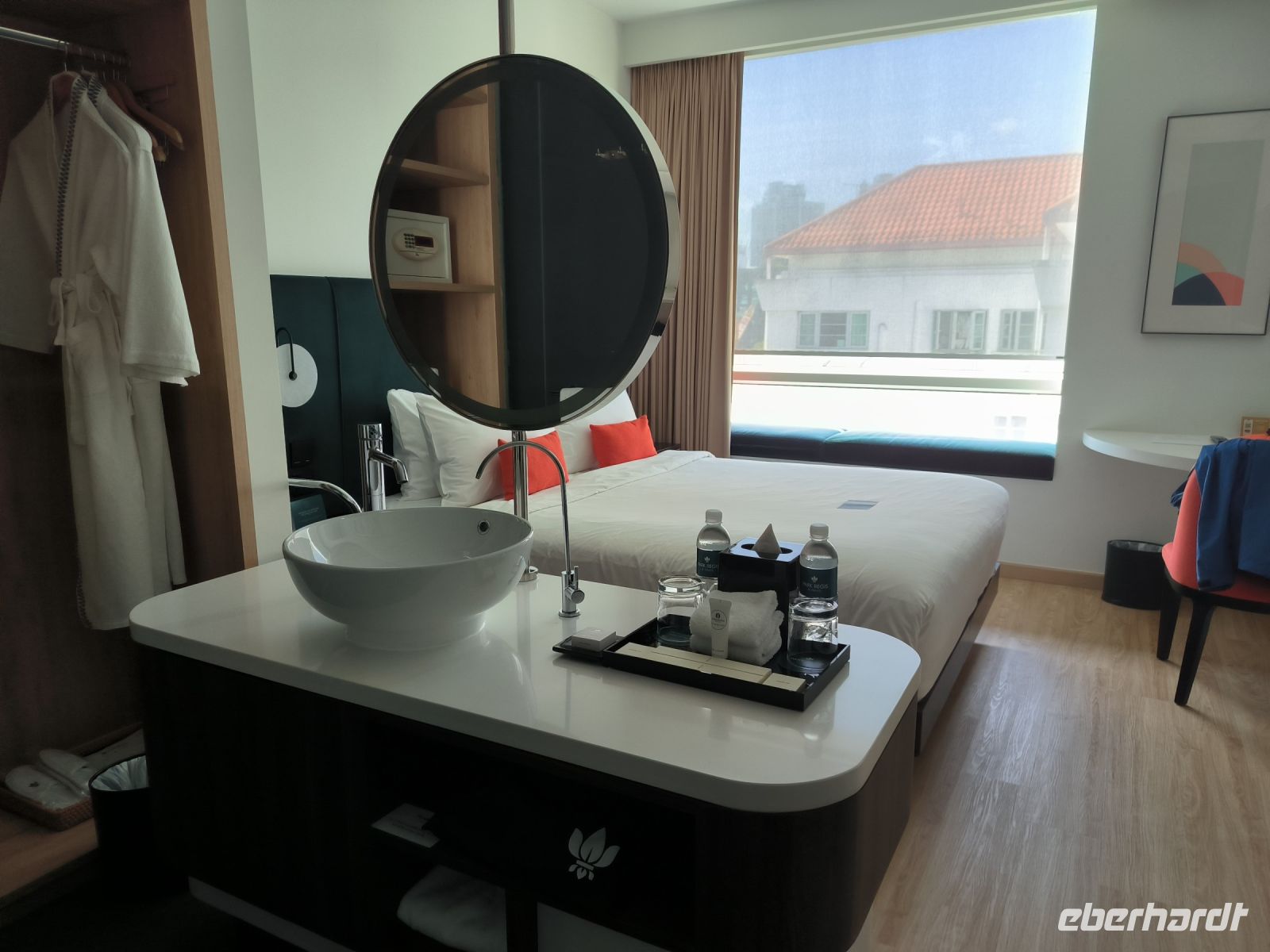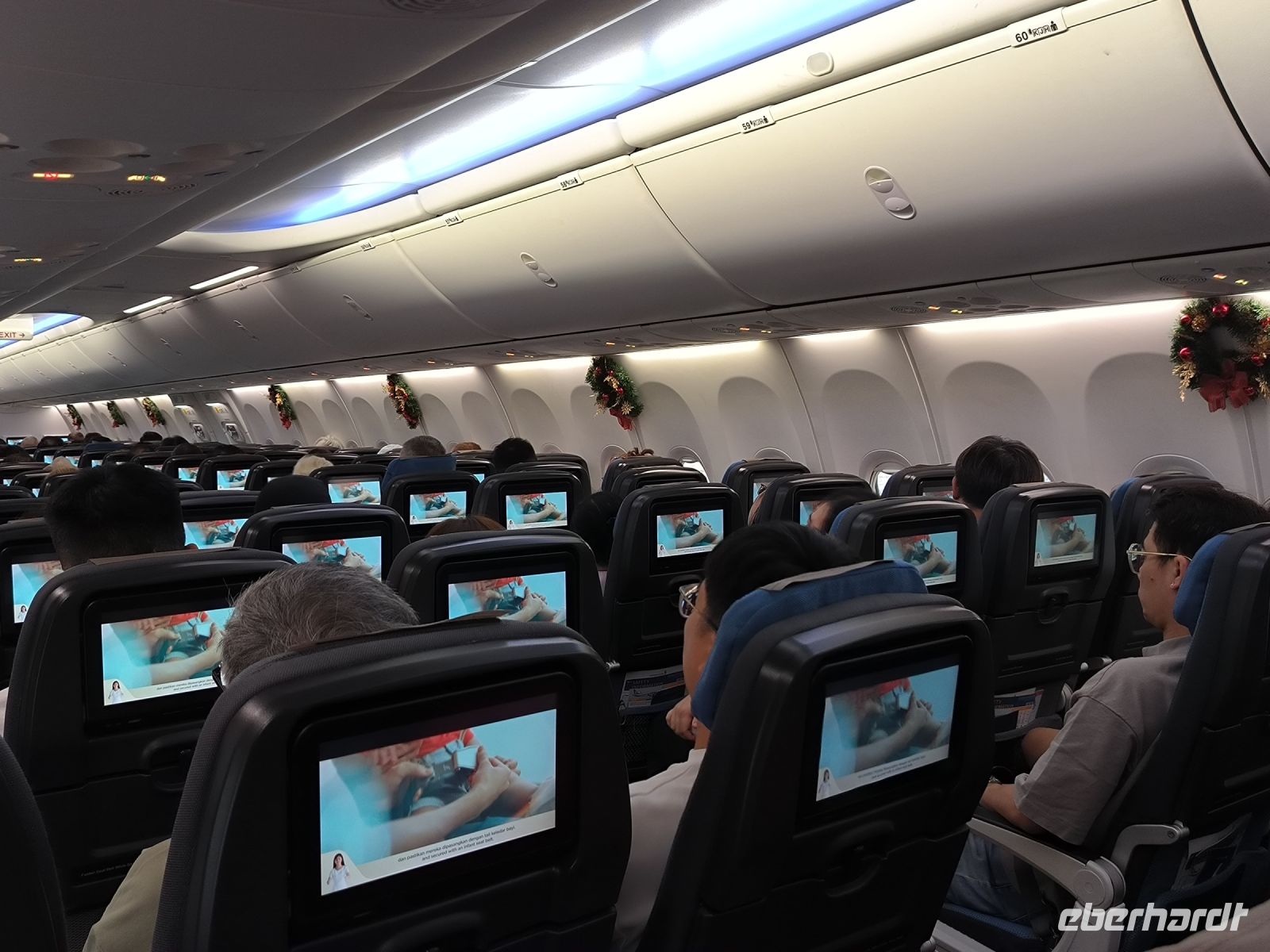 Check in, Boarding und Abflug verlaufen problemlos und pünktlich. Im Flugzeug können wir die Flugstrecke verfolgen, das Bord Entertainment bietet verschiedene Filme zur Auswahl und das wunderschöne Bordpersonal bewirtet uns freundlich. Trotzdem ziehen sich natürlich zwölf Stunden Flugzeit, bis wir – mit sieben Stunden Zeitverschiebung – am sehr frühen Morgen endlich in Singapur landen.
