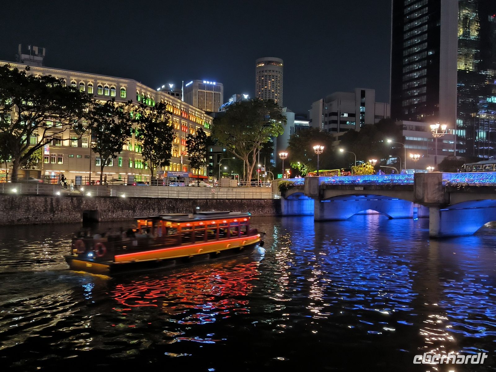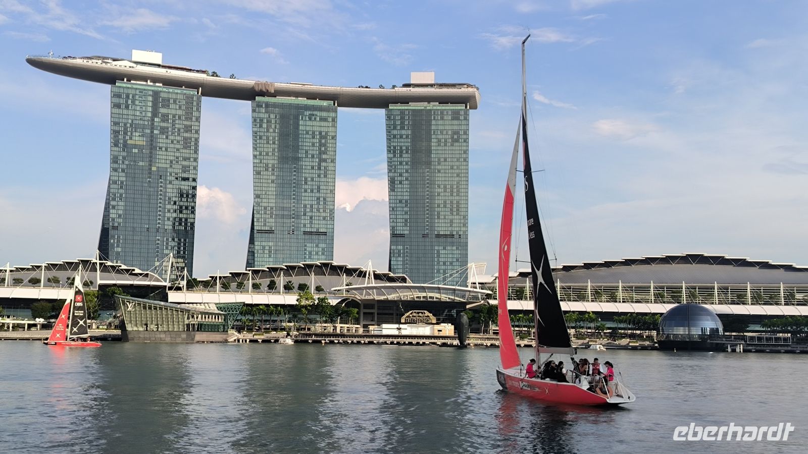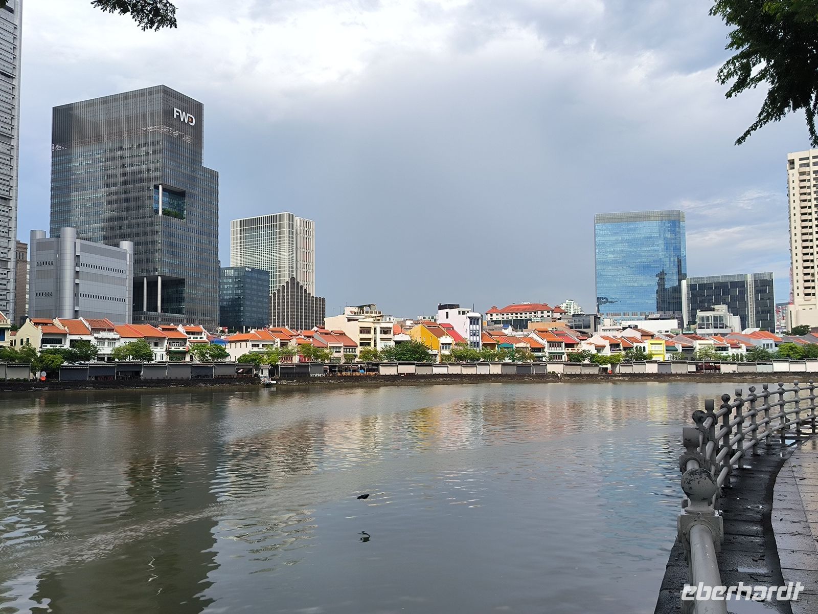 Am Clark Quay in der Nähe unseres Hotels entspannen wir bei einer kurzen Mittagspause, bevor wir an der Bootsanlegestelle unsere Bootsfahrt auf dem Singapore River beginnen. Hier können wir die nun uns schon vertrauten Gebäude um Marina Bay noch einmal von der Wasserseite aus bewundern.