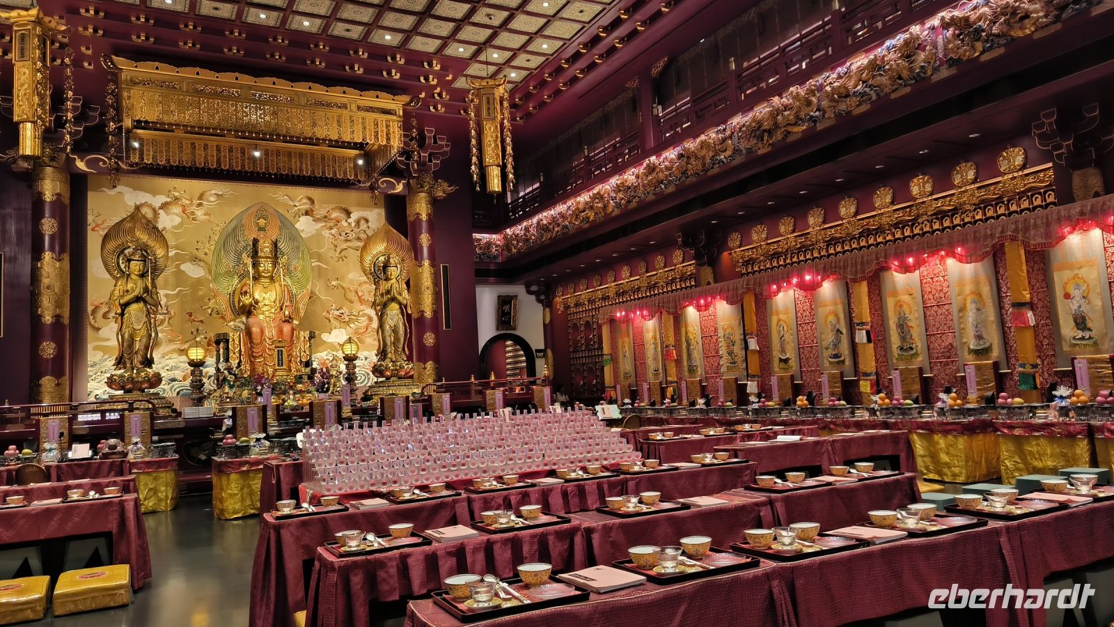 Wir steigen wieder in unseren Bus und fahren zum Orchideengarten. Wie beeindruckend ist die bunte, duftende Vielfalt der Orchideen, die hier im tropischen Klima üppig wachsen. Mit dem Bus durchqueren wir die Stadt und fahren unter anderem durch die Einkaufsstraße Orchard Road, wo bereits die ersten Weihnachtsdekorationen zu sehen sind. Und dann offenbart sich uns zum ersten Mal das Multi-Kulti-Leben der Stadt. Little India, das arabische Viertel und Chinatown liegen nicht weit voneinander entfernt und übertreffen sich lediglich in ihrer Buntheit und ihren verführerischen Düften. In Chinatown besichtigen wir u.a. den Buddha Tooth Relic Temple, in dem sich der linke Eckzahn Buddhas befinden soll. Dann ist es „Beer o’clock“, Zeit für eine Mittagspause. Wir sind schon recht geschafft von den vielen Eindrücken am ersten Tag und froh, als wir dann am Nachmittag in unser schönes Hotel Park Regis einchecken können.
