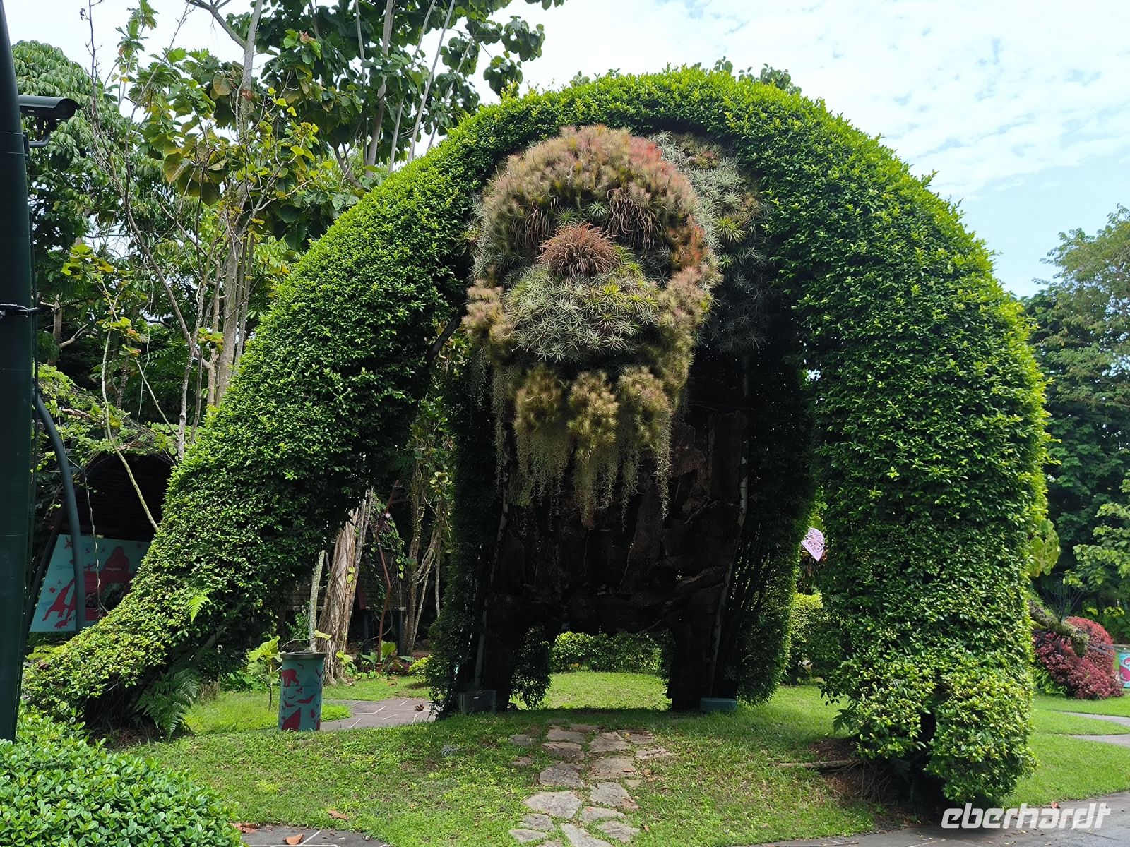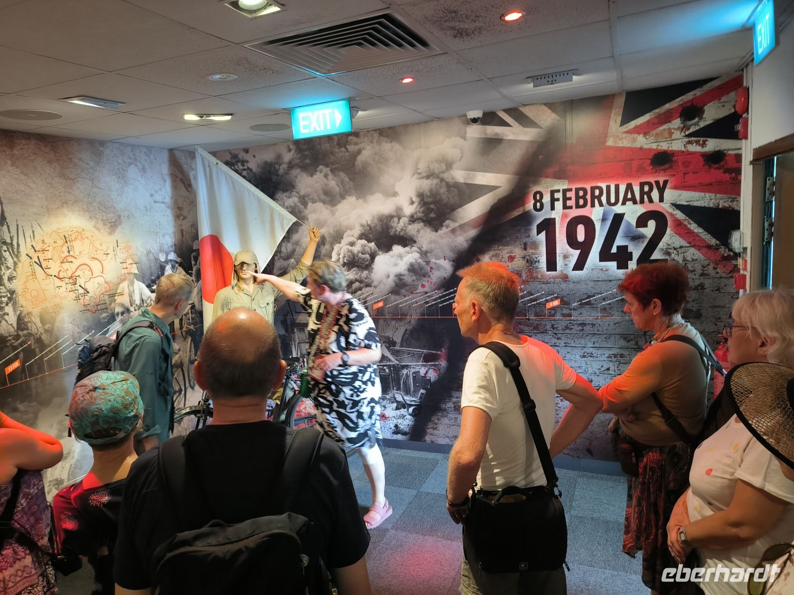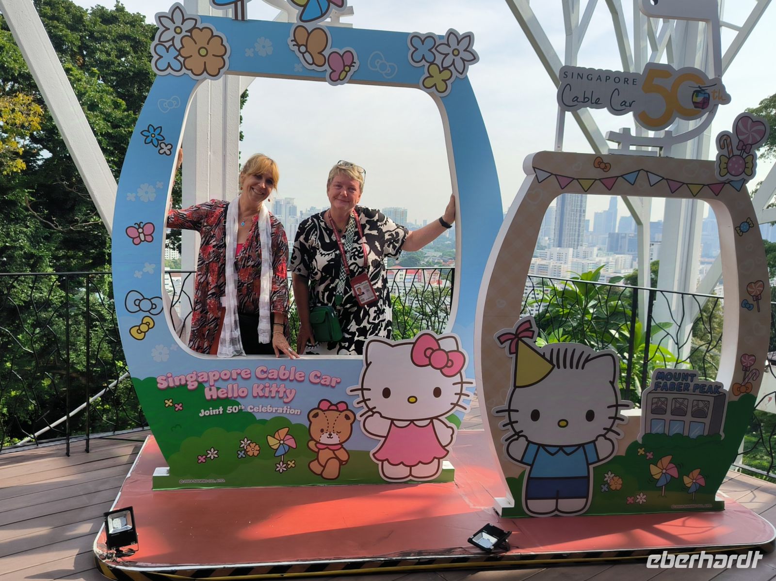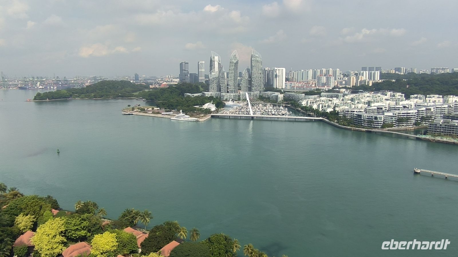 Das Frühstücksbuffet im Hotel ist wirklich üppig und teilweise mit für uns ungewohnten Speisen gefüllt. Bus, futuristische Seilbahn, Minitram und Monotrail werden heute unsere Fortbewegungsmittel sein. Pünktlich 9 Uhr steht unsere Bibi vor dem Hotel und wir fahren zum 105 Meter hohen Mount Faber, wo uns eine spannende Seilbahnfahrt zum 5 km² kleinen Sentosa Island erwartet. Wir fliegen über den Hafen und die Attraktionen der Insel. Über einen Baumwipfelpfad wandern wir zum Fort Seloso, dem ehemaligen britischen Marinestützpunkt, der von der bewegten jüngeren Vergangenheit erzählt.