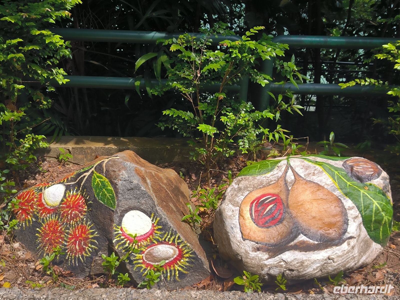 Unser Weg führt uns zum Fort Canning Park, wo sich auch ein interessanter Gewürzgarten befindet. Wer hat schon einmal Muskatnüsse am Baum gesehen?