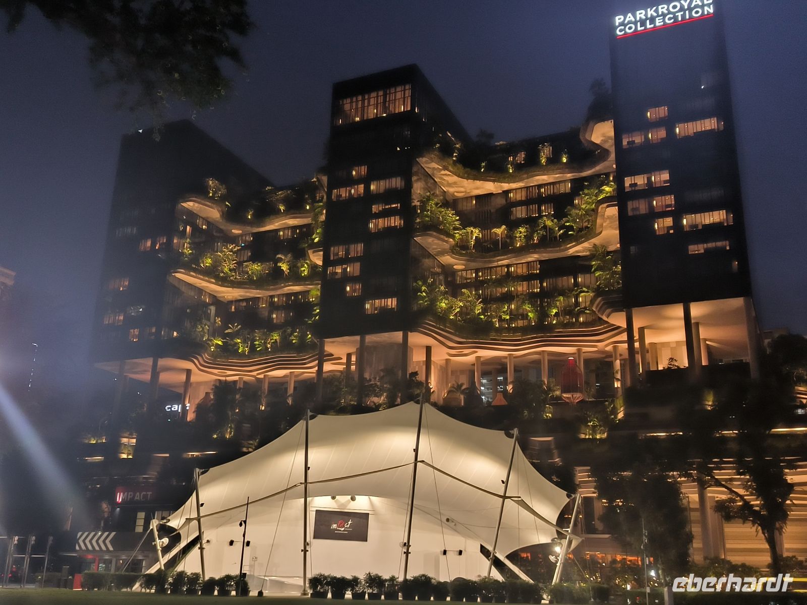 Nach dem Abendessen fahren einige Gäste sind noch einmal zu den Gardens by the Bay, um die Lichtershow in den Supertrees zu sehen. Andere sind müde und kehren zum Hotel zurück, um ihre Koffer zu packen.