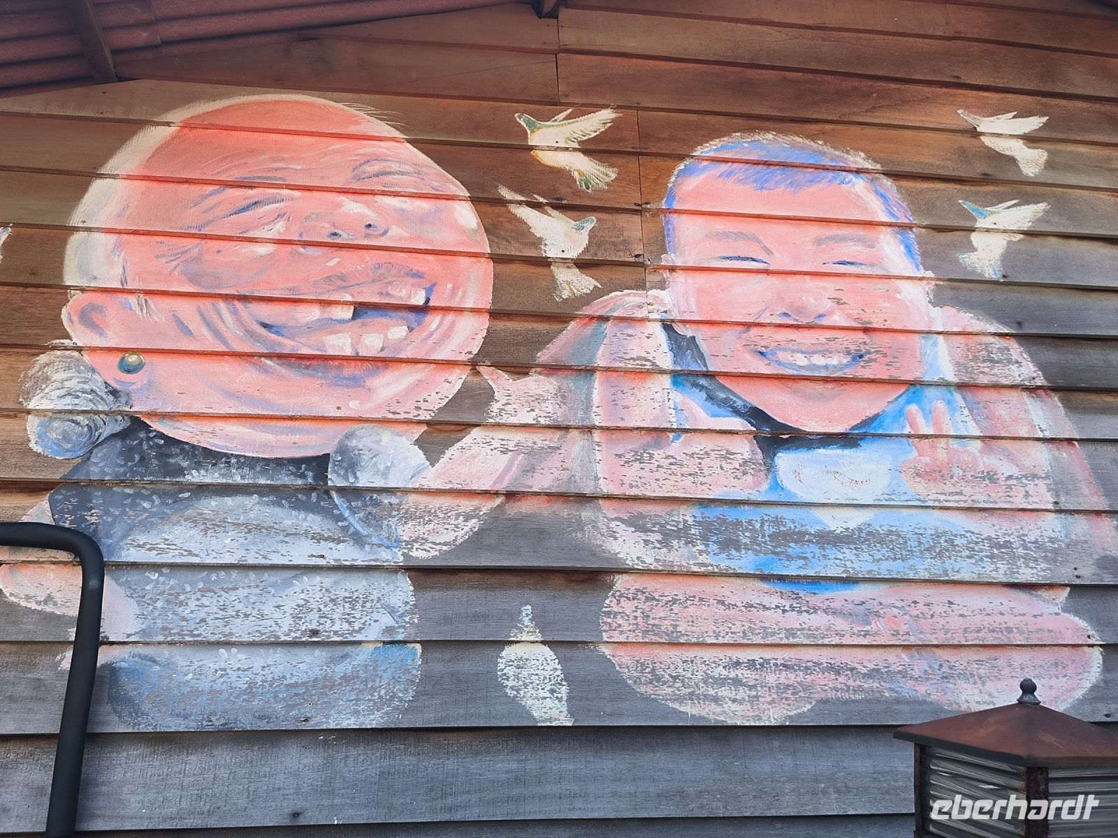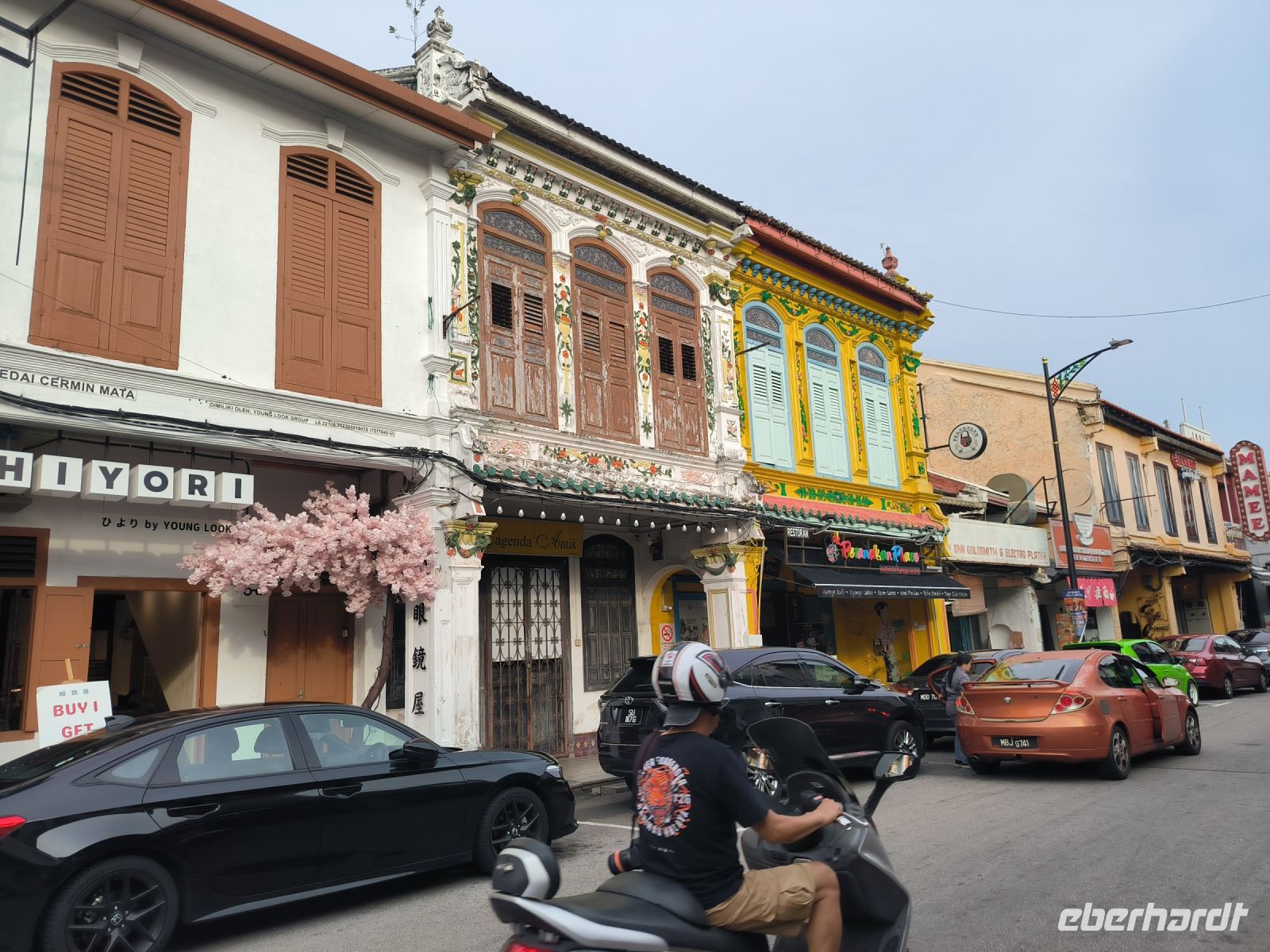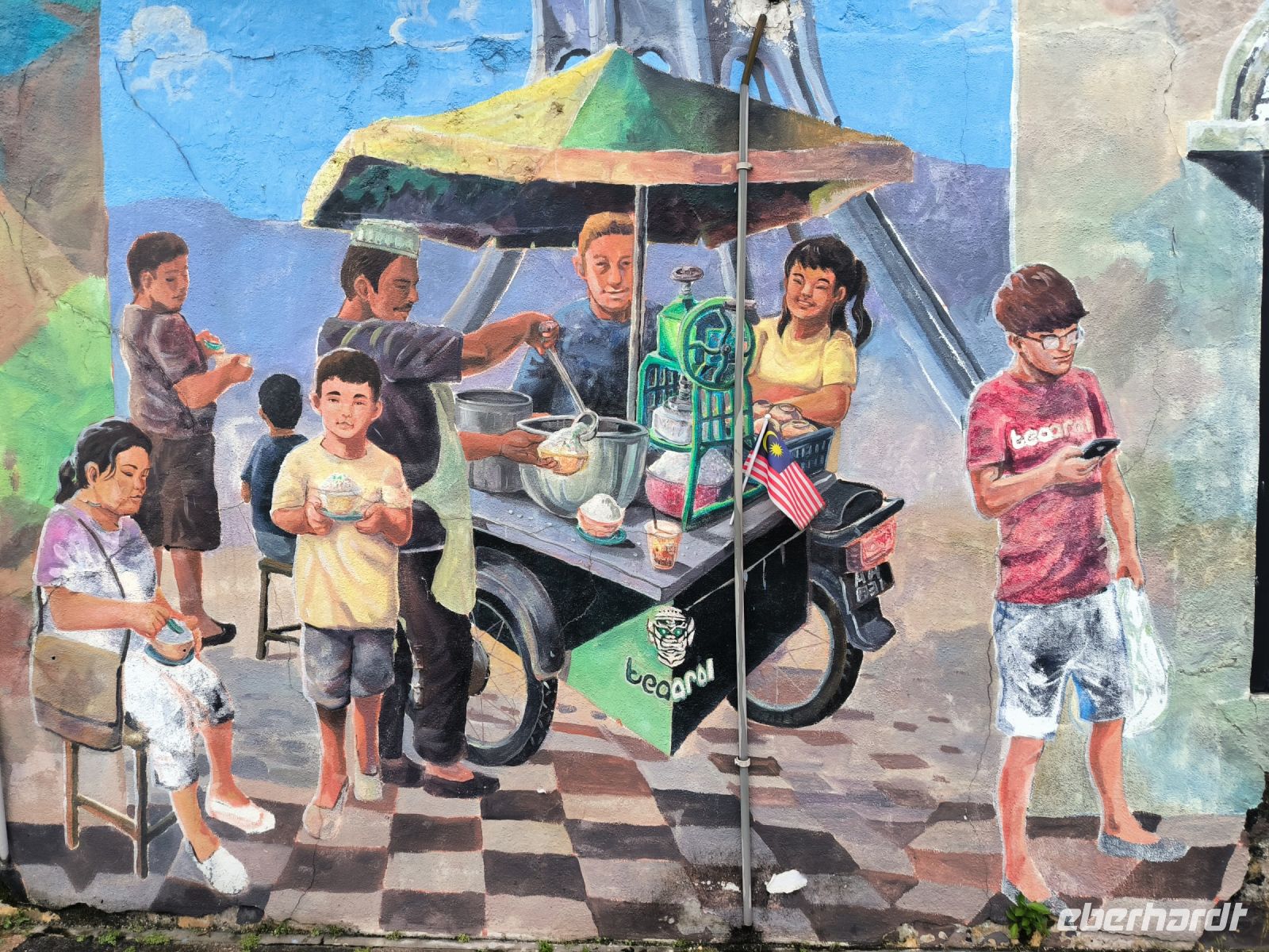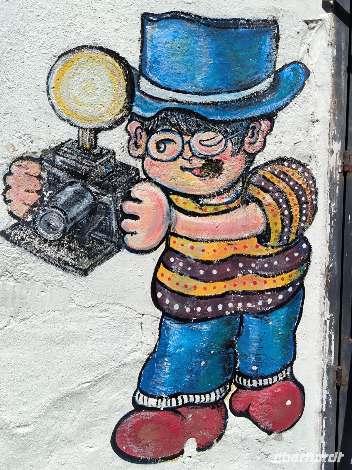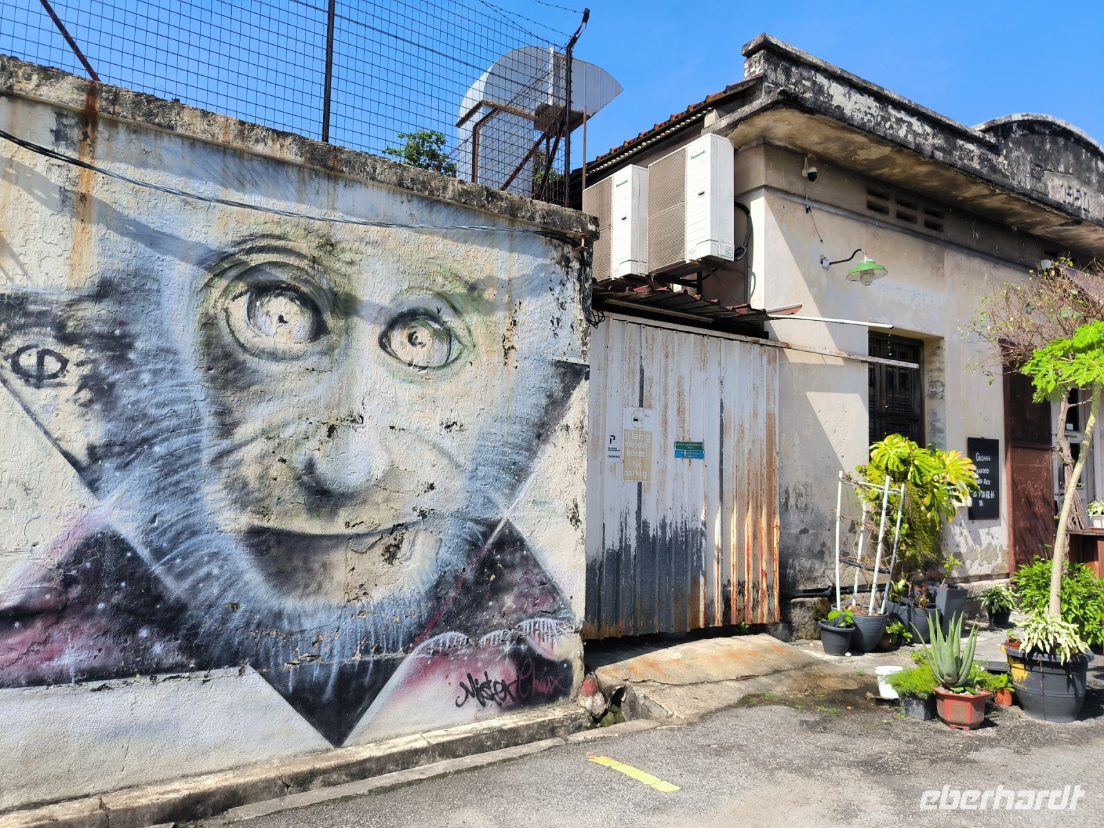 Auch in Penang gibt es jede Menge Streetart zu entdecken. Am berühmtesten Motiv mit den beiden Kindern auf dem Fahrrad vom litauischen Künstler Ernest Zacharevic müssen wir uns anstellen, um einmal einen freien Blick darauf zu erhaschen. Ob wohl auch Banksy hier schon ein Kunstwerk hinterlassen hat?