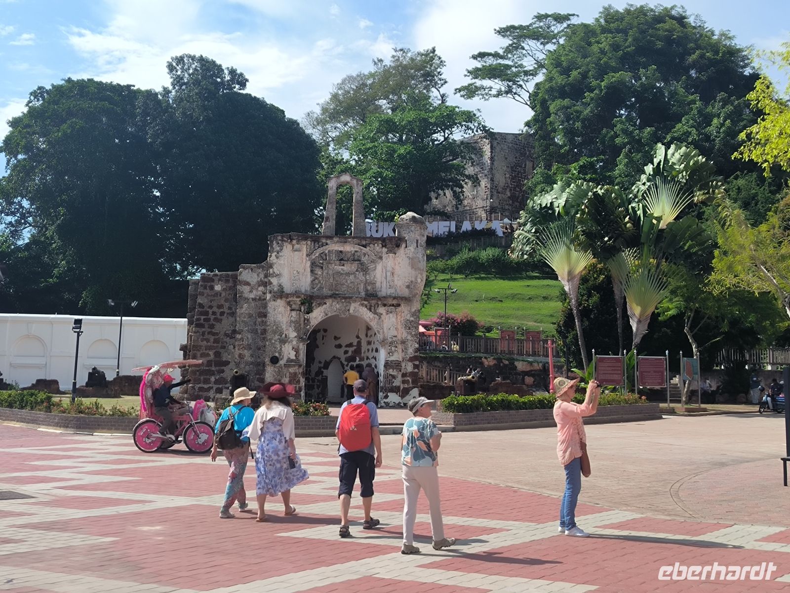 Gegen Mittag kommen wir in Malakka an, der Name leitet sich vom dort wachsenden Melaka Baum ab. Der Hindu-Fürst Parameswara ist der Gründer der Stadt, die wir auf unserer Stadttour gleich kennenlernen. Durch die Porta de Santiago steigen wir auf die portugiesische Festung A Famosa zu den Ruinen der St Paul’s Church hinauf.