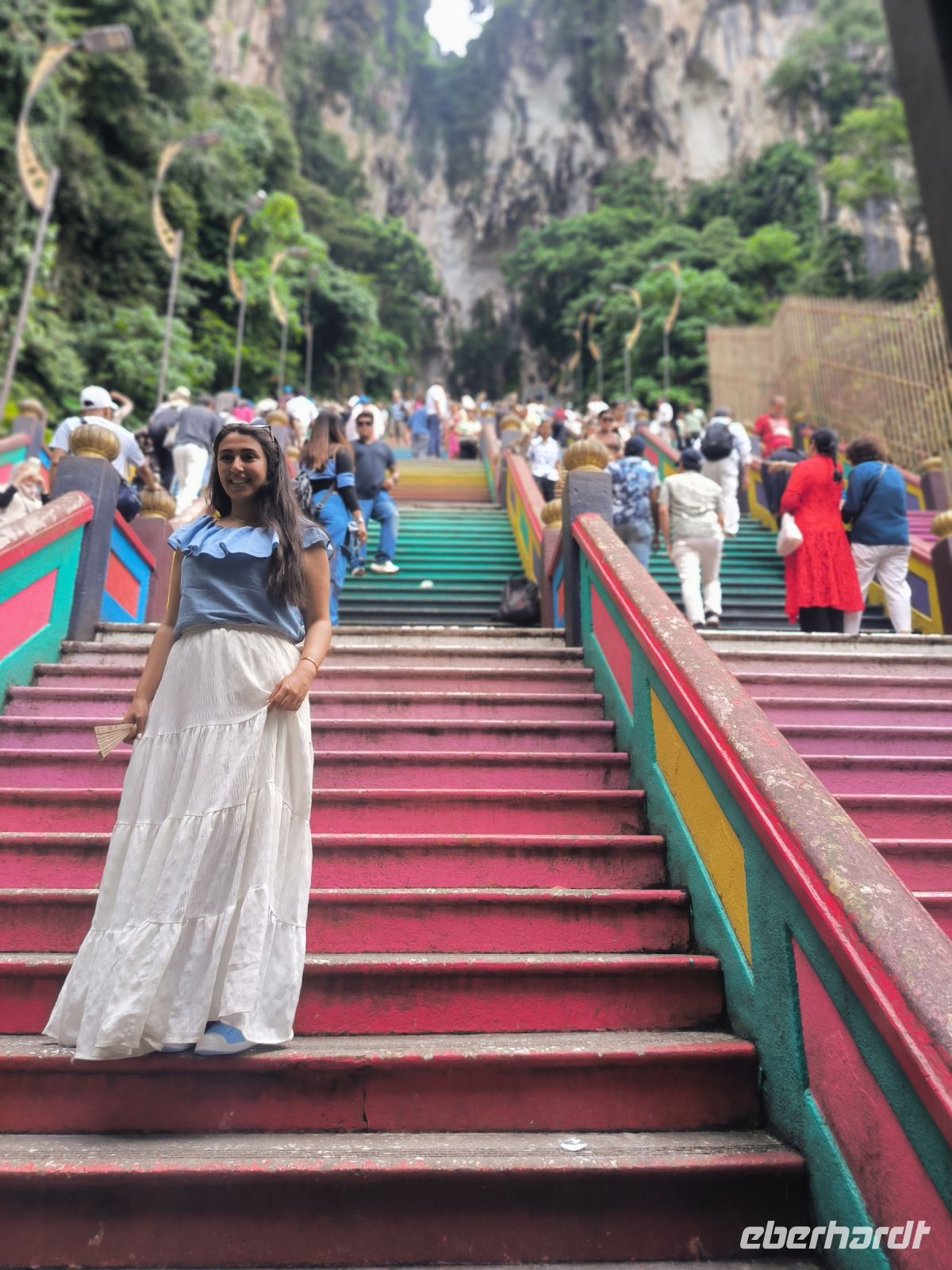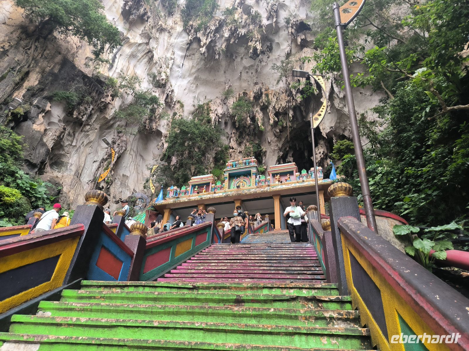 Zuerst fahren wir zu den Batu Caves, große Höhlen, die mehrere Hindu-Tempel beherbergen.