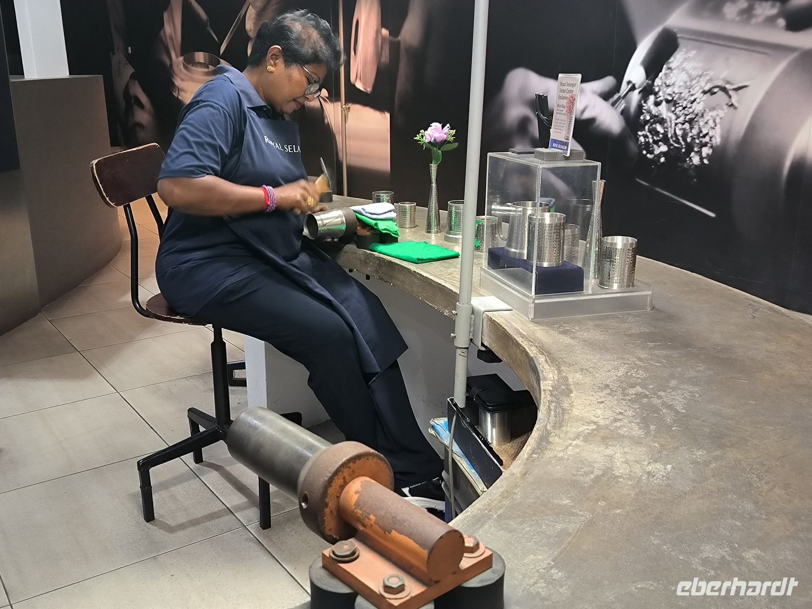 Was wäre der Besuch der Zinn – Stadt ohne die Besichtigung der Royal Selangor Zinngiesserei. Hier gewinnen wir überraschende Einblicke in die Herkunft des Reichtums der Stadt und die verschiedenen Arbeitsschritte auf dem Weg zu einem stilvollen Zinnprodukt. Letztere werden auch gern mit nach Hause genommen.