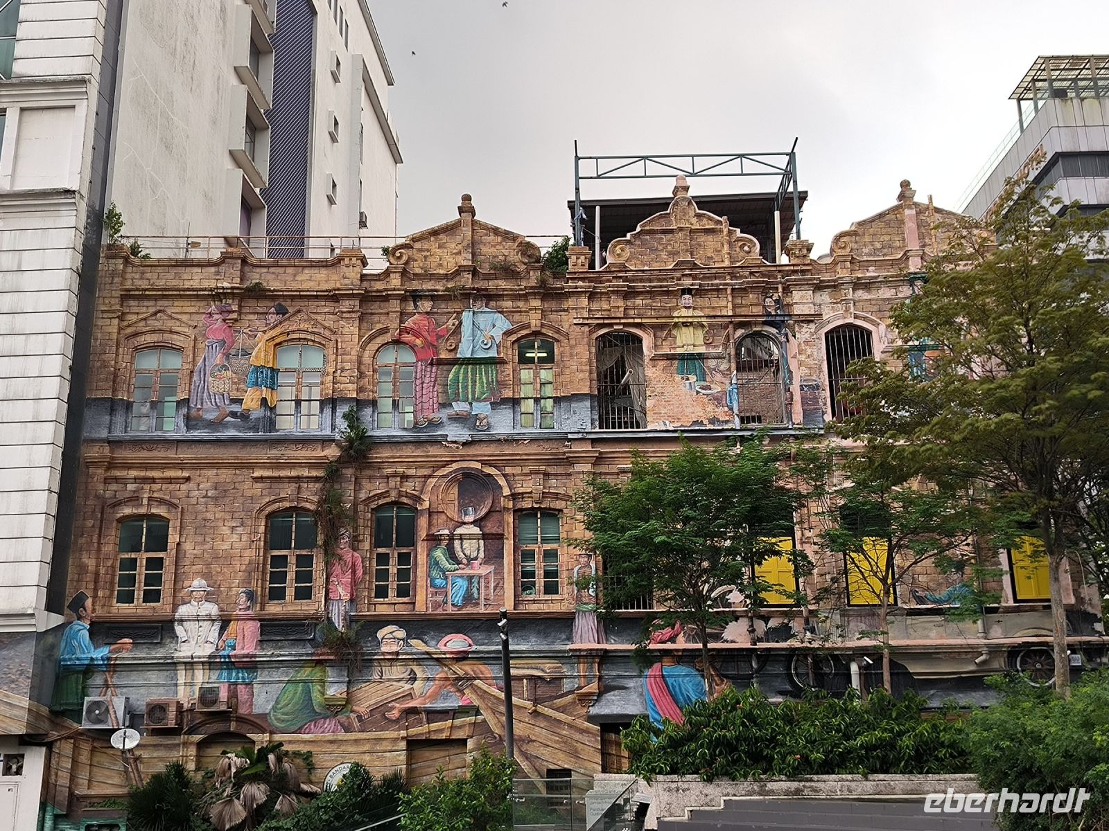 Der Regen läßt nach und wir starten unsere kurze Tour zu Fuß durch Ipoh. Aber Achtung, es ist rutschig! Zul zeigt uns die Altstadt mit vielen Streetart Motiven und die Concubine Lane, die aus ihrer wechselvollen Geschichte viel über Liebe, Reichtum und schlüpfrige Geheimnisse erzählen könnte.