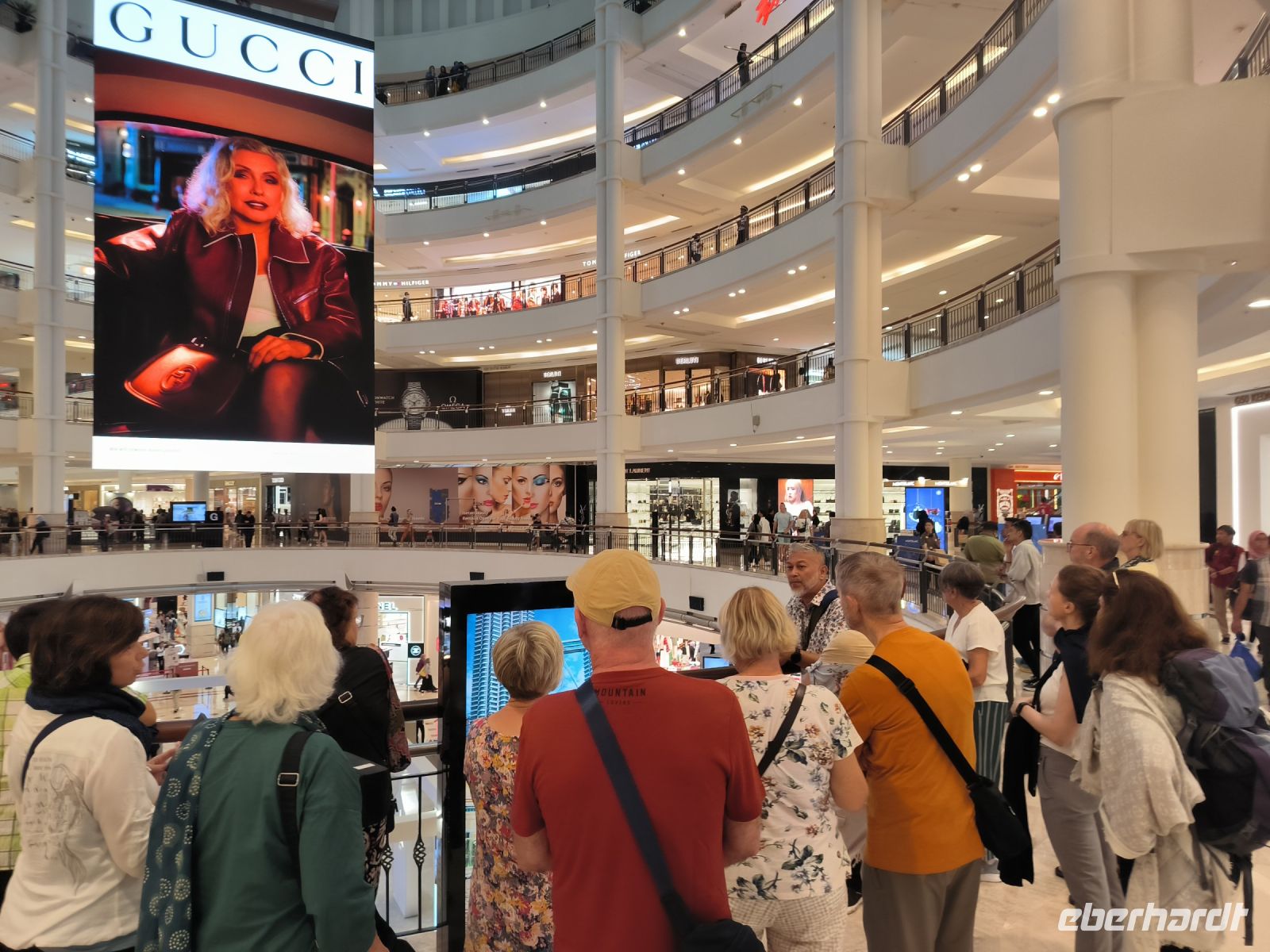 Bei unserer Ankunft im Melia Hotel sind noch nicht alle Zimmer fertig, so müssen einige ein paar Minuten warten, um ihre Zimmer beziehen zu können. Die anschließende Freizeit verbringen wir in der Shopping Mall gegenüber vom Hotel, die die größte Mall Malaysias mit zahlreichen Geschäften, Achterbahn und Kino sein soll.