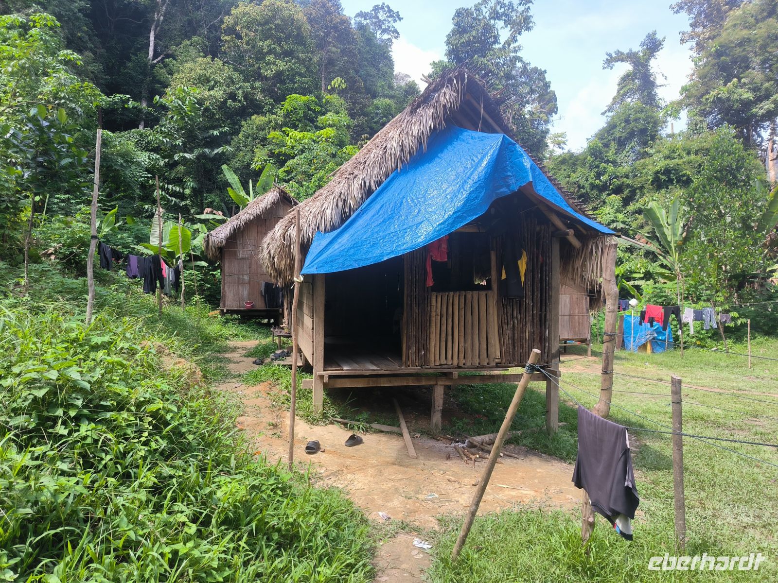 Unsere Guides zeigen uns viele Pflanzen, die für die Ureinwohner alle einen Zweck erfüllen, ob nun medizinisch oder handwerklich (z.B. als Schleifpapier). Nach einer kurzen Bootsfahrt erreichen wir das Dorf des Naturvolkes der Orang Asli. An deren zumeist noch sehr ursprünglichen Lebensweise sind wir sehr interessiert, auch wenn die Besichtigung einen kleinen voyeuristischen Beigeschmack hat. Die größeren Kinder sind in der Schule, nur wenige Familien sind daheim, die religionslosen Negritos sind sehr scheu. Sollte einer der Bewohner sterben, ziehen die Nomaden weiter und hinterlassen den so kontaminierten Ort. Zwei junge Dorfbewohner zeigen uns, wie man Feuer macht und wie man mit dem Blasrohr umgeht. Mit diesem werden Tiere zum Verzehr gejagt, immer nur so viel, wie man gerade benötigt. Mit dem Kauf einiger handgefertigter Souvenirs unterstützen wir das Dorf.
