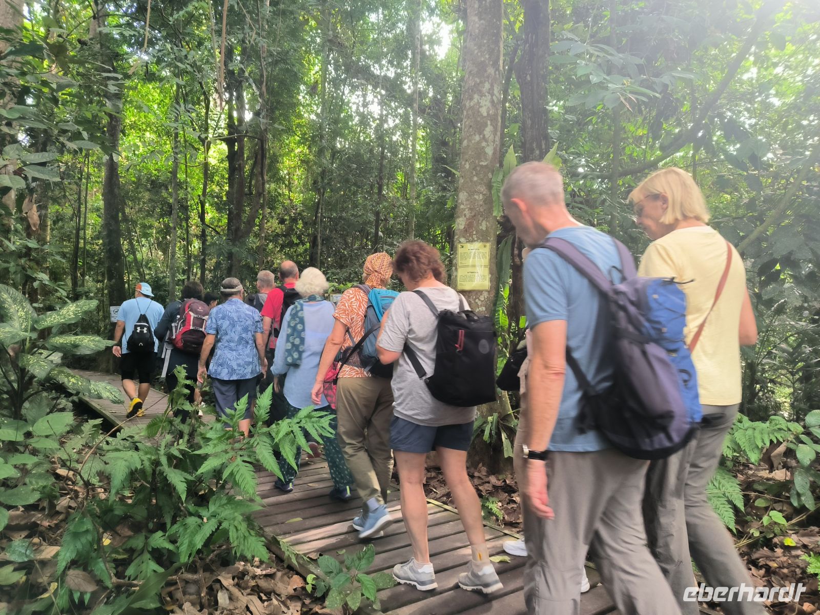Nach dem leckeren Frühstück machen wir uns auf den Weg durch den Dschungel zum Teresek Hill und erleben nun noch einmal den Regenwald bei Tageslicht.