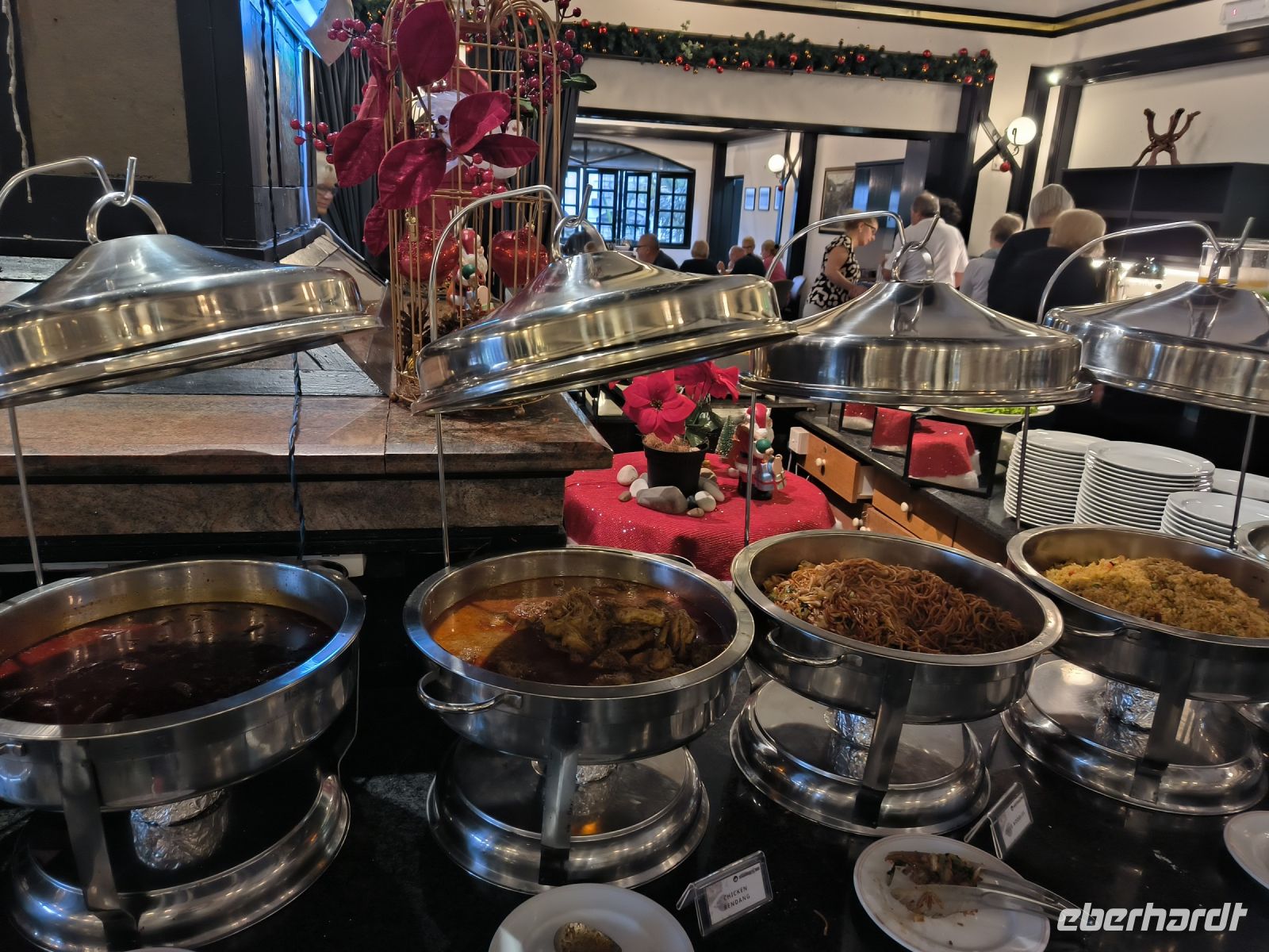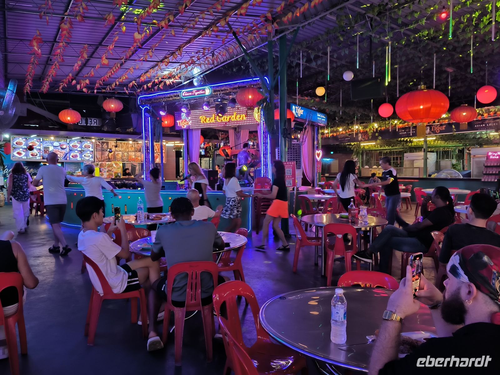 Unser „Bayview Hotel“ in Georgetown heißt uns herzlich willkommen. Nach dem Check In besuchen einige von uns die naheliegende Garküche Red Garden. Hier essen die Einheimischen, wir sind die einzigen Touristen. Also fast. Kaum beginnt die Live Musik, betritt ein Tanzpaar die Fläche und wirbelt über das Parkett. Wir erfahren später, dass sie aus Australien kommen und auch schon den einen oder anderen Tanzwettbewerb gewonnen haben. Das steckt an und bald tanzen wir alle fröhlich mit.