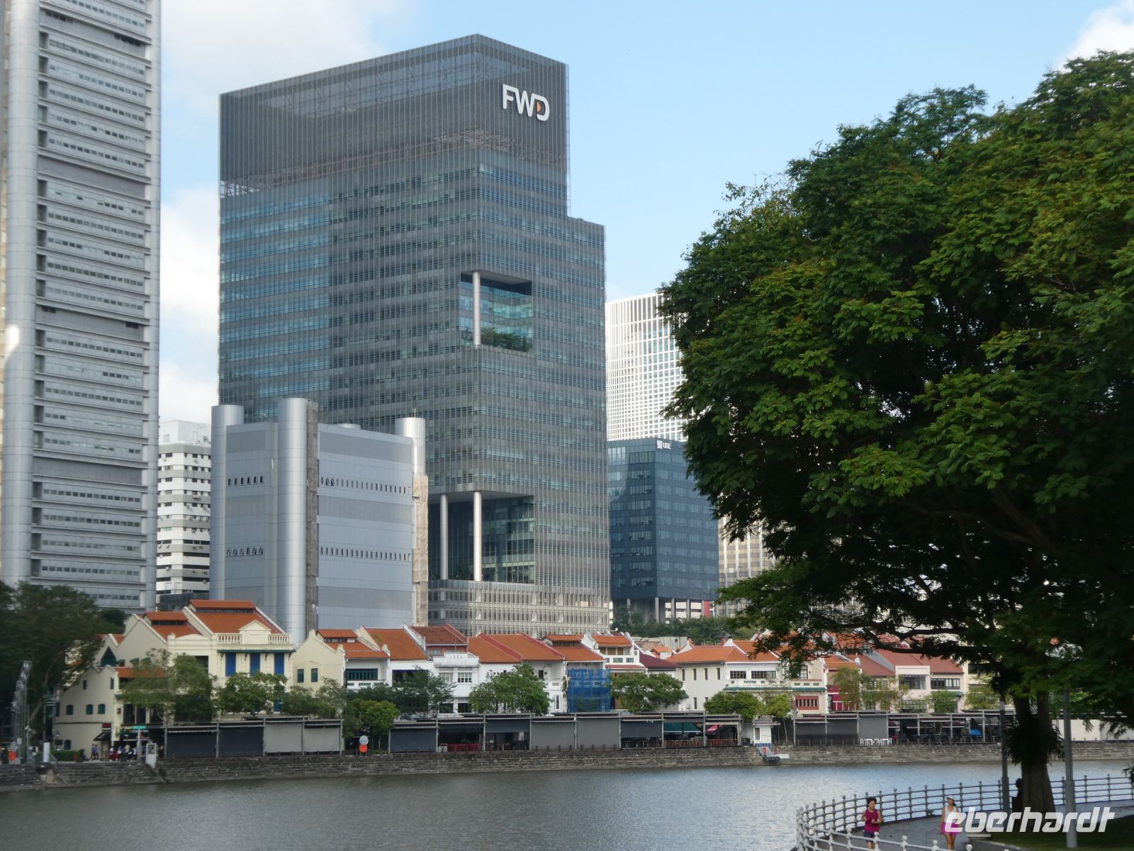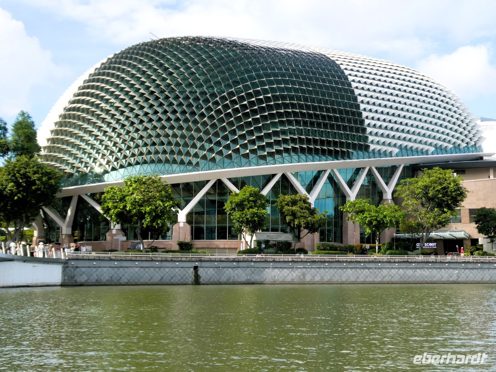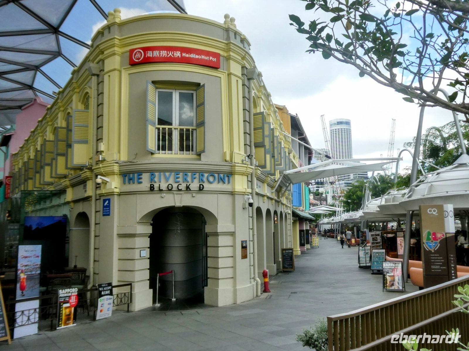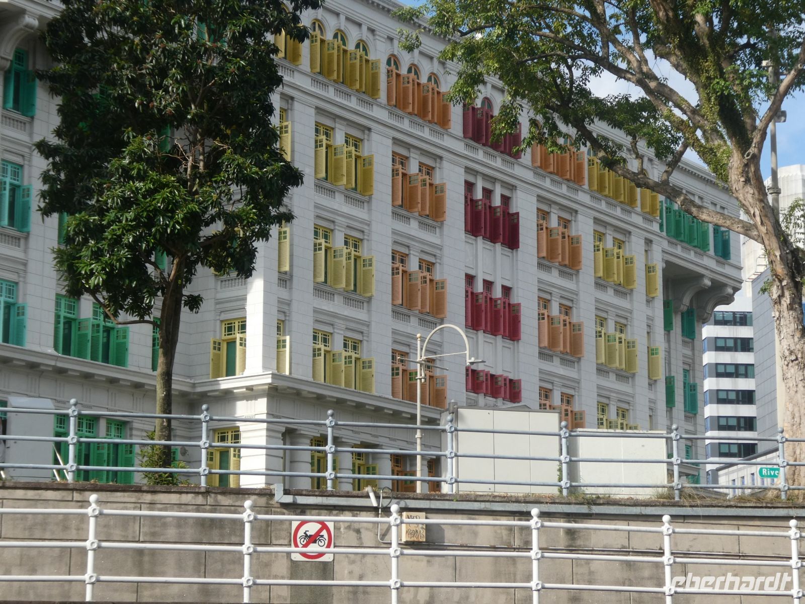 Wir sehen Wolkenkratzer auf der anderen Seite des Singapur Rivers der die Stadt durchzieht. Er spielte in historischen Zeiten eine wichtige Rolle in der Entwicklung der Stadt. Eine Statue von Herrn Raffles steht vor dem Victoria Theater, ein ansprechender Kolonialbau. Wir bewundern das ehemalige Postamt in dem heute das Fullerton Hotel seine Gäste bewirtet und durchqueren das Souterrain des Hotels bis auf die andere Seite von wo wir auf das Marina Bay Sands Hotel blicken. Es ist ein futuristischer Bau, der seit seiner Eröffnung im Jahr 2010 mit anderen sehr modern wirkenden Gebäuden die Skyline von Singapur prägt. Den 340 m langen Dachgarten, der quer über die 3 Hoteltürme erbaut wurde, werden wir am Montag besuchen.