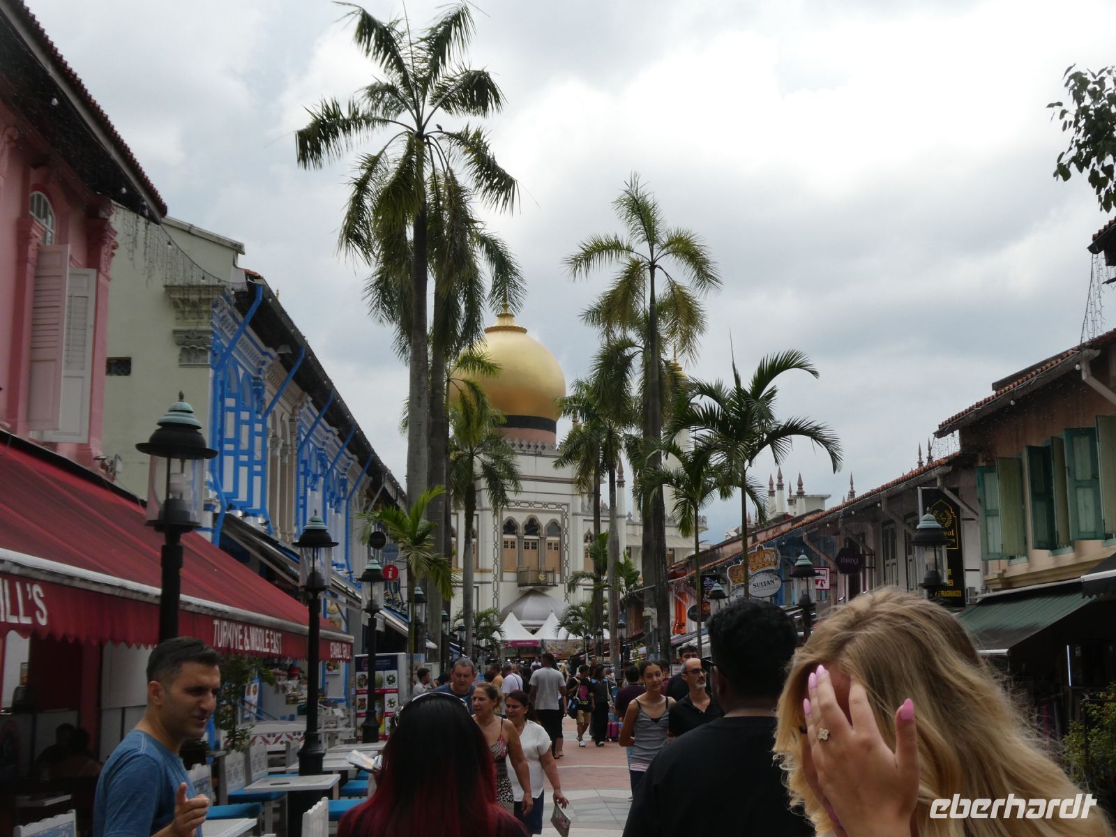 Nach diesem kurzweiligen Besuch geht es in die Stadt zurück nach Little India wo es wie in der indischen Heimat zahlreiche Kleidermärkte und Geschäfte gibt. Auch Schneider bieten ihre Dienste an. Wir gehen auf den Obst- und Gemüsemarkt und können einige exotische Früchte kosten, die bei uns so gar nicht bekannt sind. Danach bleibt noch ein Abstecher in das muslimische Viertel mit der schönen Sultanmoschee die mit ihrer Kuppel weithin zu sehen ist. Da Ramadan ist, wird das Leben in dem Viertel von Touristen bestimmt. Wir bekommen trotzdem in einem der Kaffees einen arabischen Kaffee und auch andere Geschäfte, in denen man einen Imbiss bekommt, sind geöffnet.