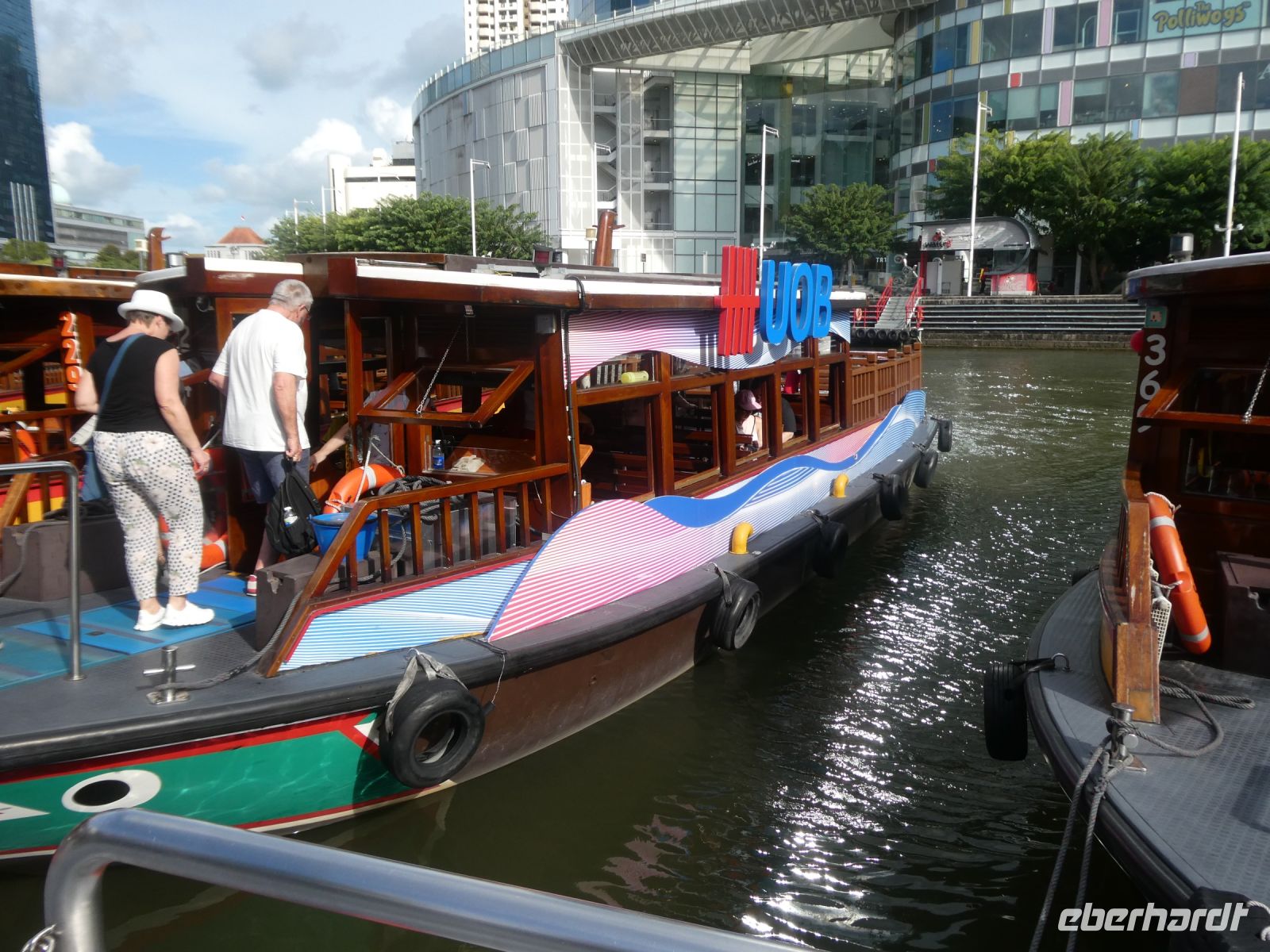 Nach diesen eindrücklichen Besichtigungen benötigen wir auch angesichts der Wärme eine kleine Erholung. Die holen wir uns bei einem kleinen Spaziergang über die Kais mit ihren restaurierten Shop-Houses in denen heute hauptsächlich Restaurants untergebracht sind. Bevor unsere Bootsrundfahrt beginnt stärken wir uns in einem der Restaurants hier an den Kais.