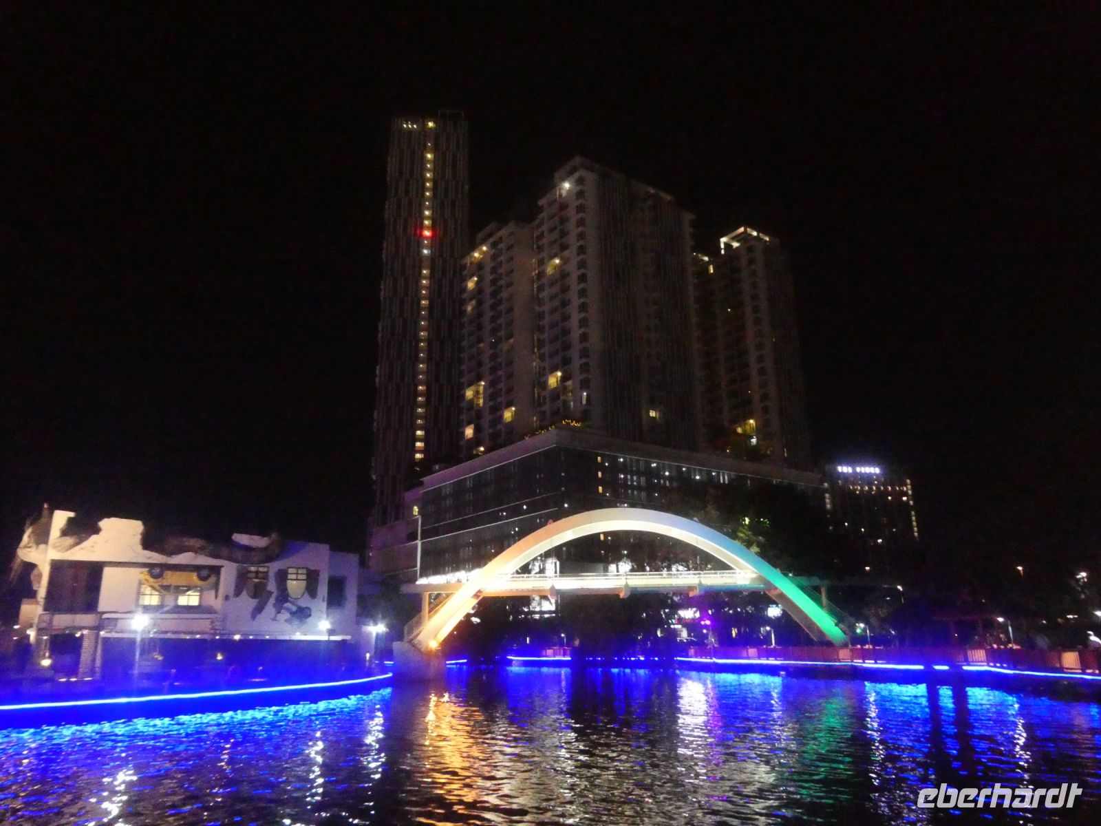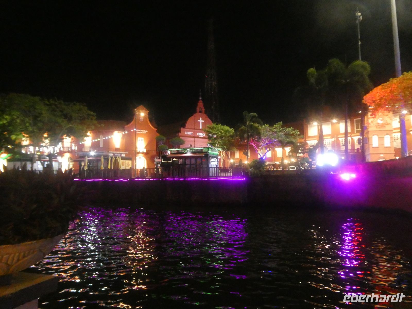 Dies ist sehr reichhaltig und wir geniessen diesen Abschluss des Tages. Ein Teil der Gruppe beschließt, in das Hotel zurück zu laufen. Richard begleitet uns durch dass Nachtleben von Malakka. Immer am Fluss entlang bieten sich schöne Ansichten in der beleuchteten Stadt. Nach einer Stunde sind wir dann wieder am Hotel und verabschieden uns bis morgen.