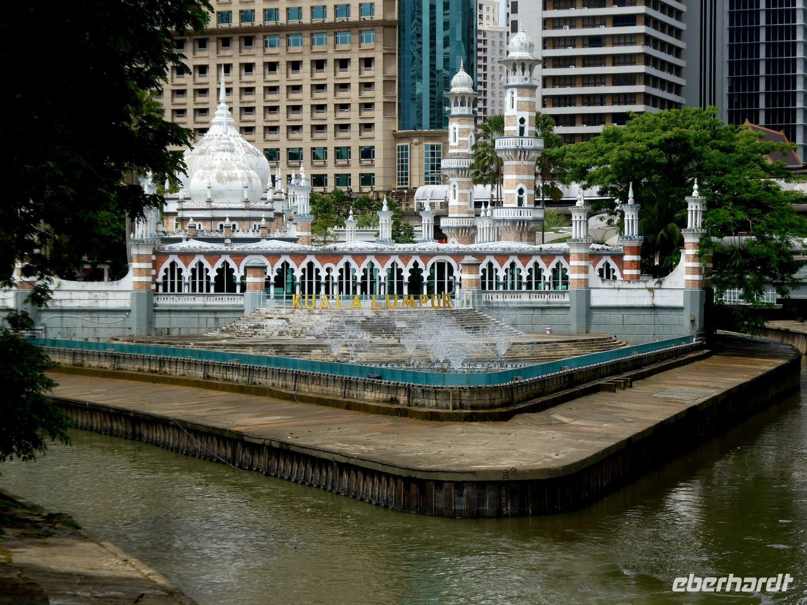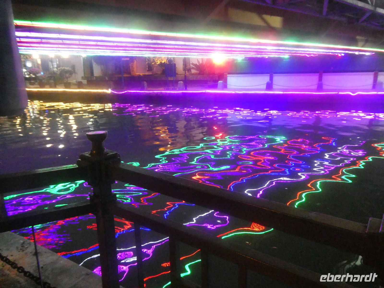 Am Zusammenfluss vom Gombak und Klang die zusammen den "Schlammigen Fluss" bilden, was ja Kuala Lumpur bedeutet, machen wir eine kurze Pause um die schummrige Atmosphäre auf uns wirken zu lassen. Die Beleuchtung unterstreicht die Szenerie. Die Wände zahlreicher Häuser sind fantasievoll bemalt, denn Grafiti-Kunst steht hoch im Kurs. Wir lassen uns durch Chinatown treiben und entdecken so manch interessante Ecke.