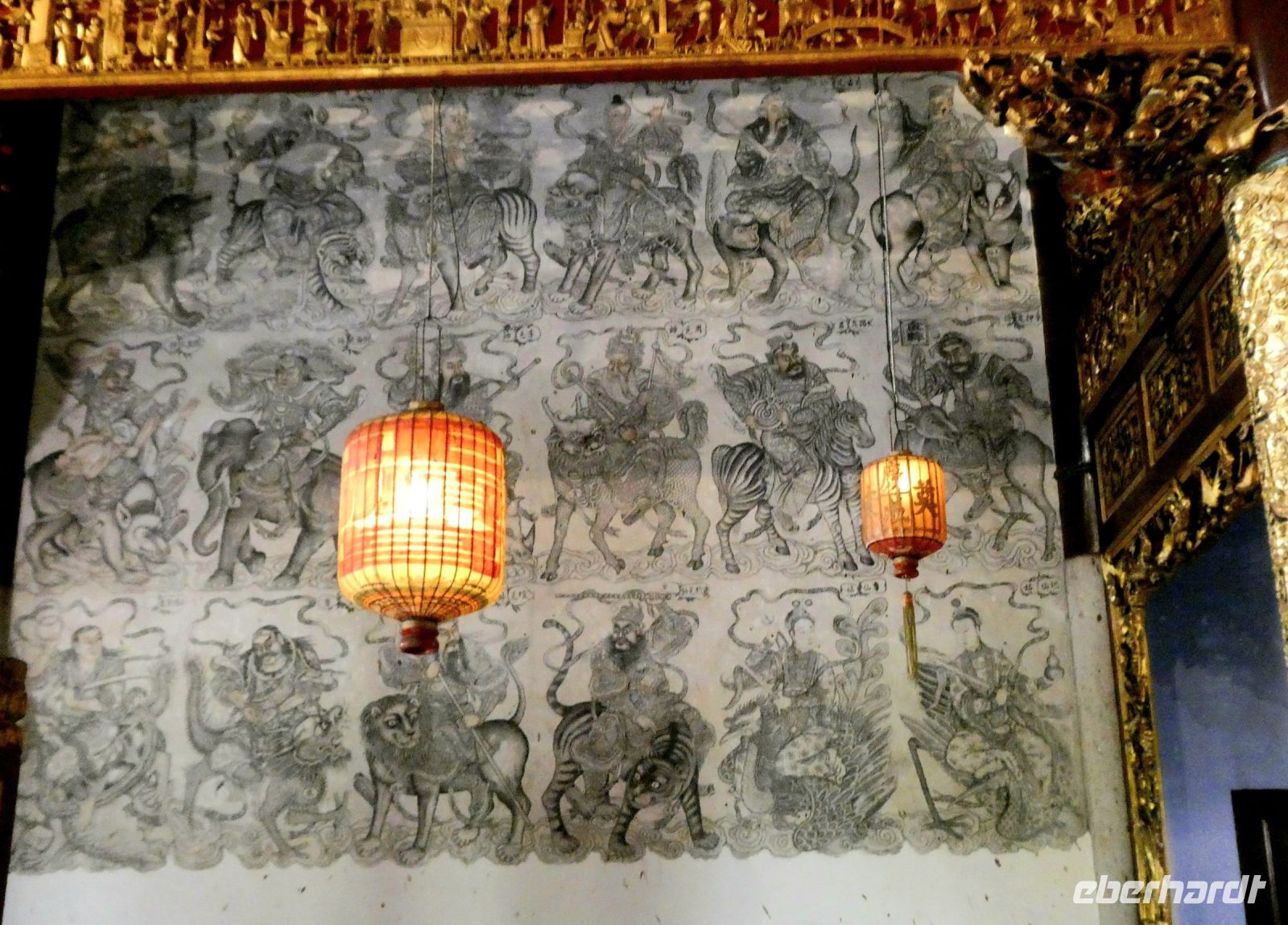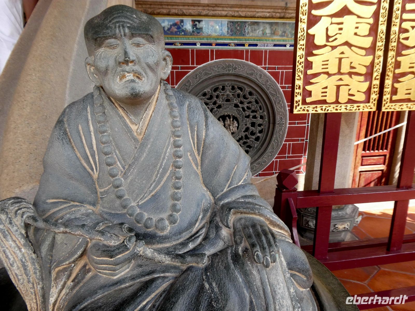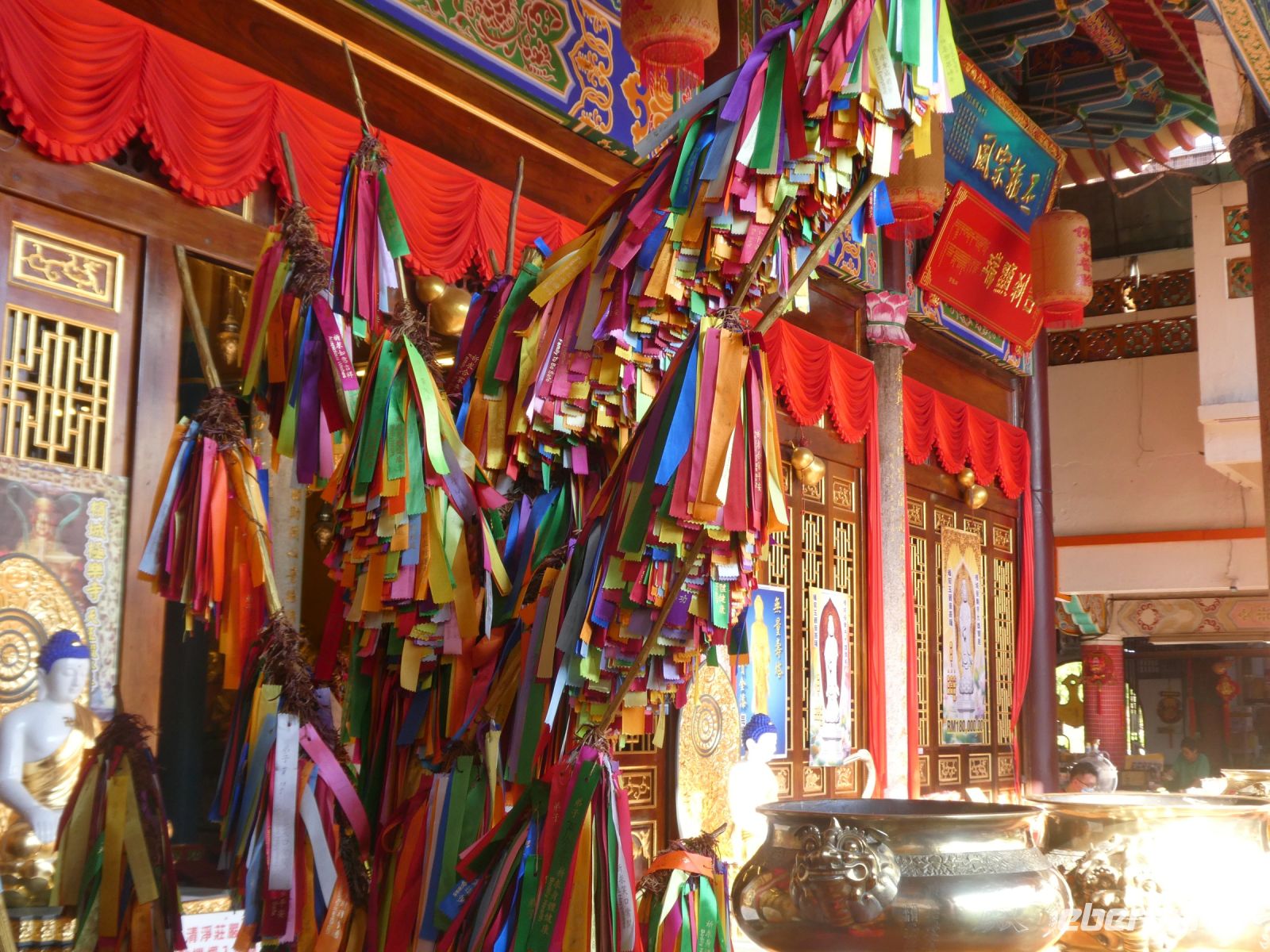 Wir werden an einem Ende der bekannten Flaniermeile, der Jonker-Street von unserem Fahrer abgesetzt und beginnen unsere Besichtigung mit einer Erkundung dieser lebhaften Straße. Viele chinesische Geschäfte befinden sich heute noch immer hier, wurde doch der Handel zu bestimmten Zeiten von chinesischen Kaufleuten dominiert. Später kamen dann in Folge die Portugiesen, die Niederländer und die Briten. Alle wollten von dem lukrativen Kuchen etwas abbekommen. So finden wir in Malakka auch ihre Spuren. Wir besuchen den "Cheng Hoon Teng Tempel" ein chinesischer Tempel aus dem 17.Jahrhundert, in dem 3 verschiedene Glaubensrichtungen ihren religiösen Bedürfnissen nachkommen: die Buddhisten, die Taoisten und die Anhänger der Lehre des Konfuzius. Enstprechend bunt und vielfältig ist die Ausstattung.