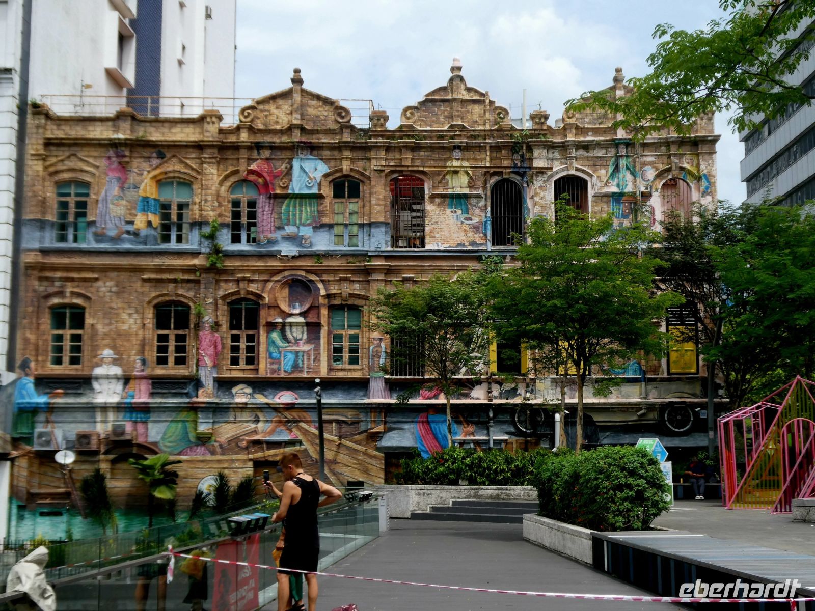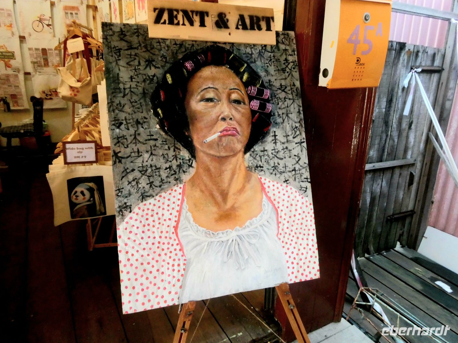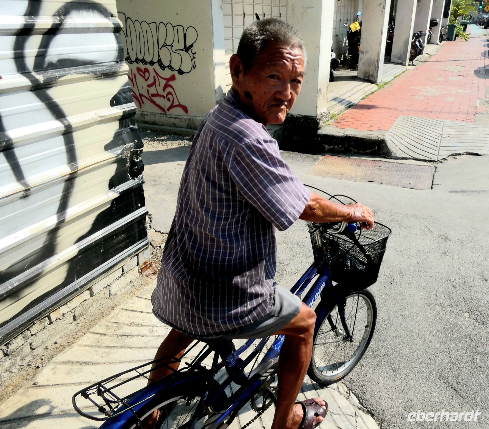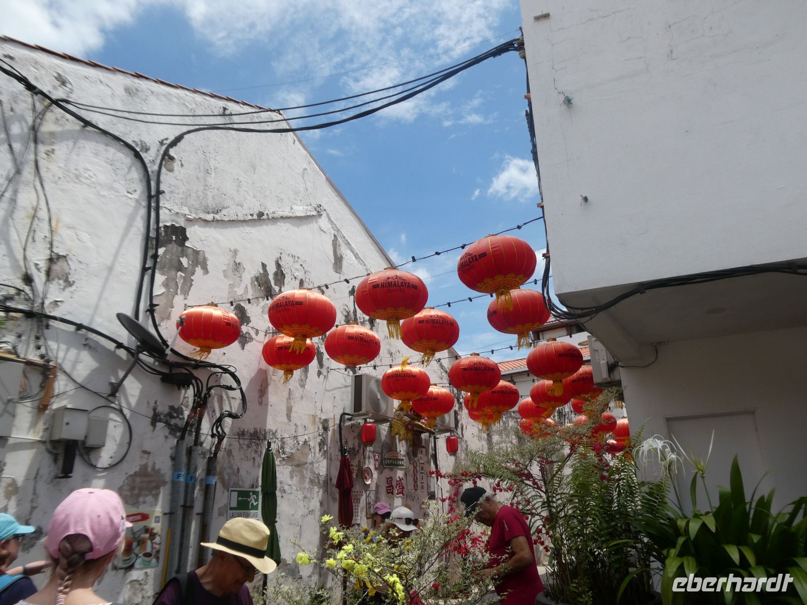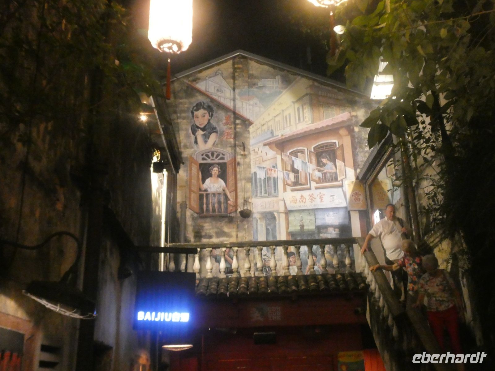 Anschließend machen wie einen kleinen Rundgang bis zur sog. "Concubine Road", der Straße der Konkubinen, wo sich einst reiche Chinesen mit ihrer Geliebten trafen. Das wurde, wenn es bekannt wurde, gesellschaftlich geduldet. Allerdings hatten die Geliebten, die aus diesen Verbindungen auch Kinder bekamen, so gut wie keine Rechte. Heute sind in den alten Gassen moderne Kaffees und Geschäfte untergebracht. An einigen Häusern können wir auch Graffiti bestaunen.