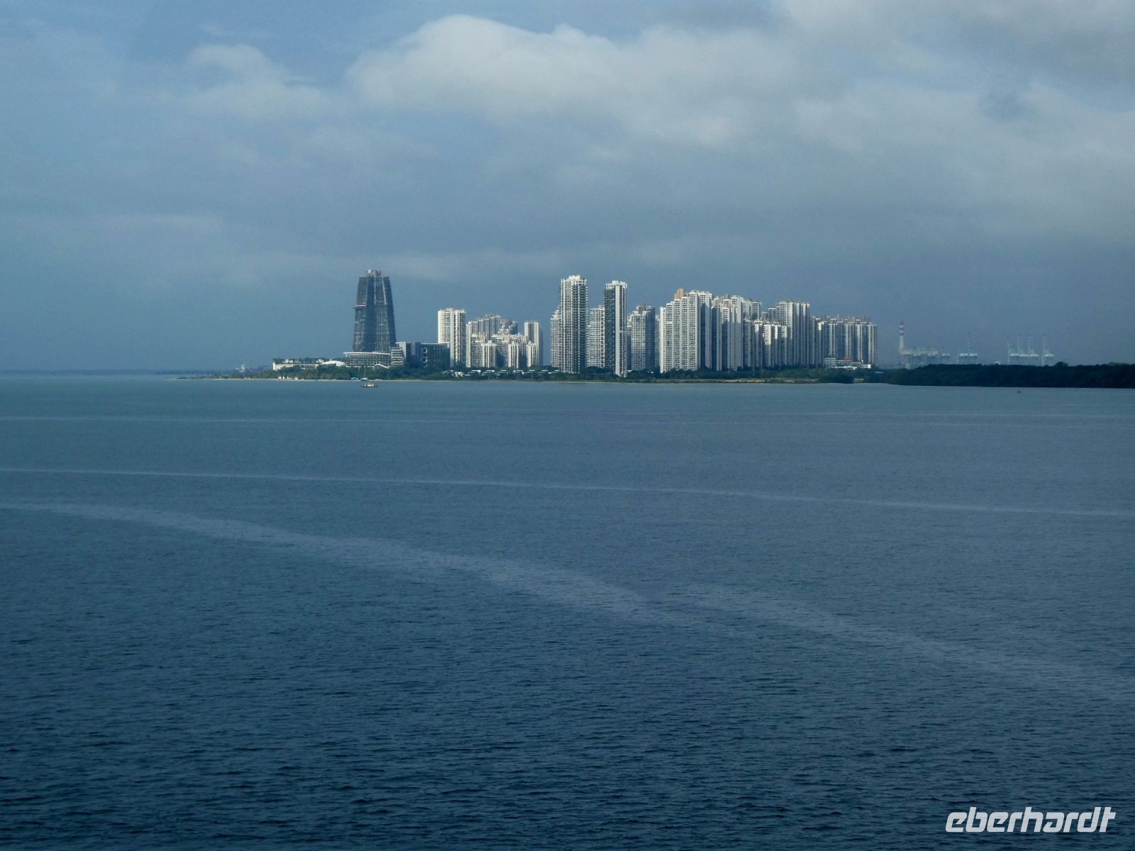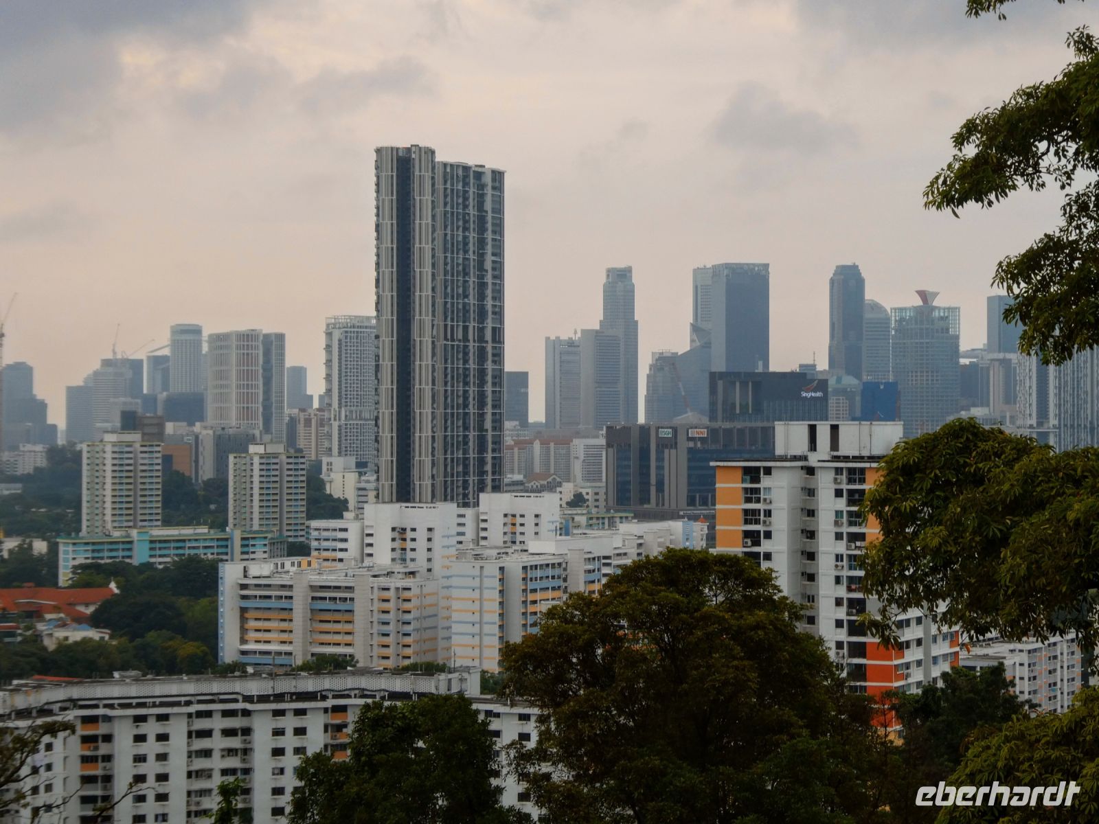 So erreichen wir nach 12 Stunden Flug den Stadtstaat Singapur mit seinem berühmten Flughafen Changi bei etwas trübem Wetter.