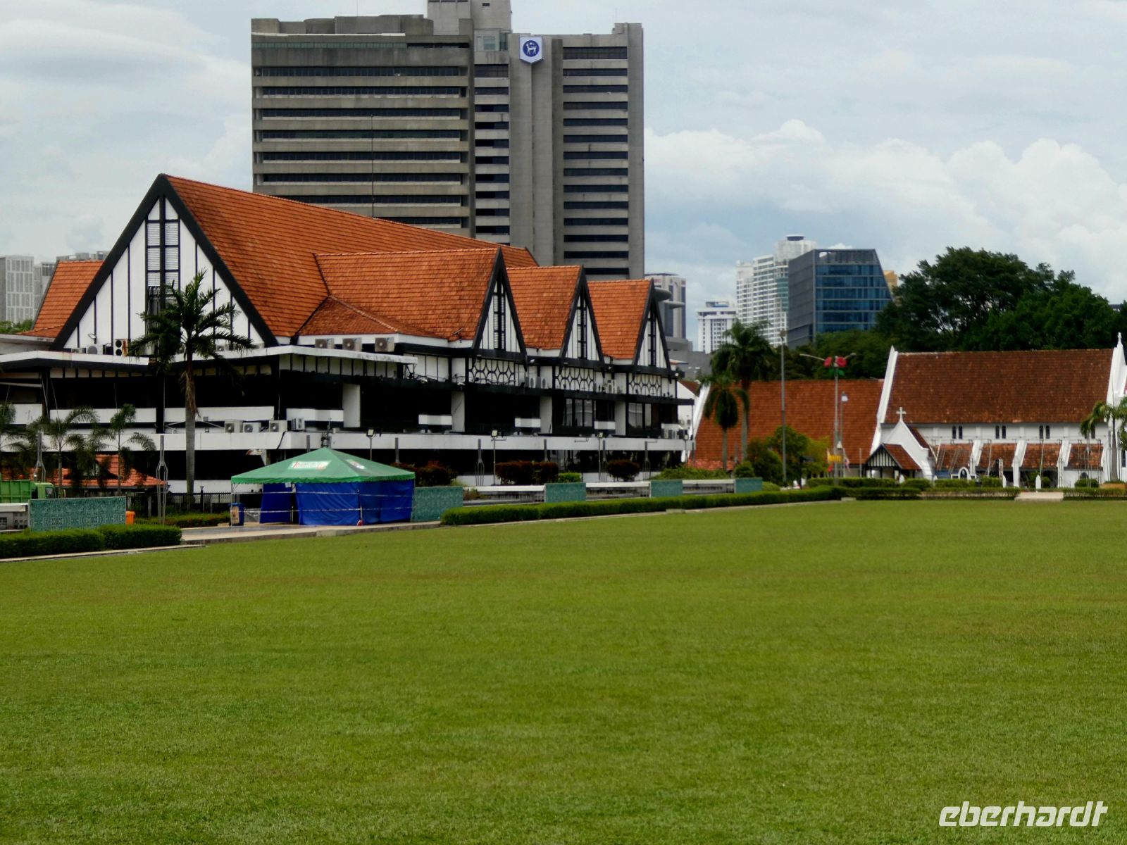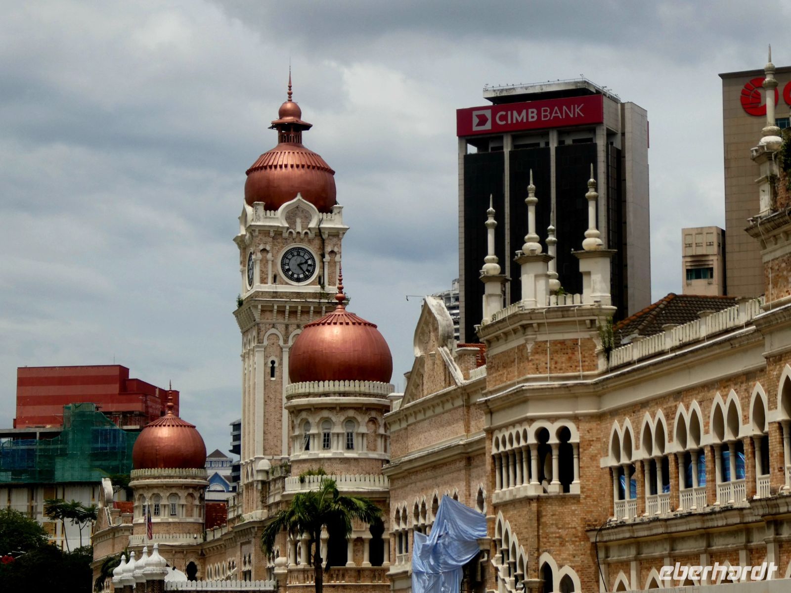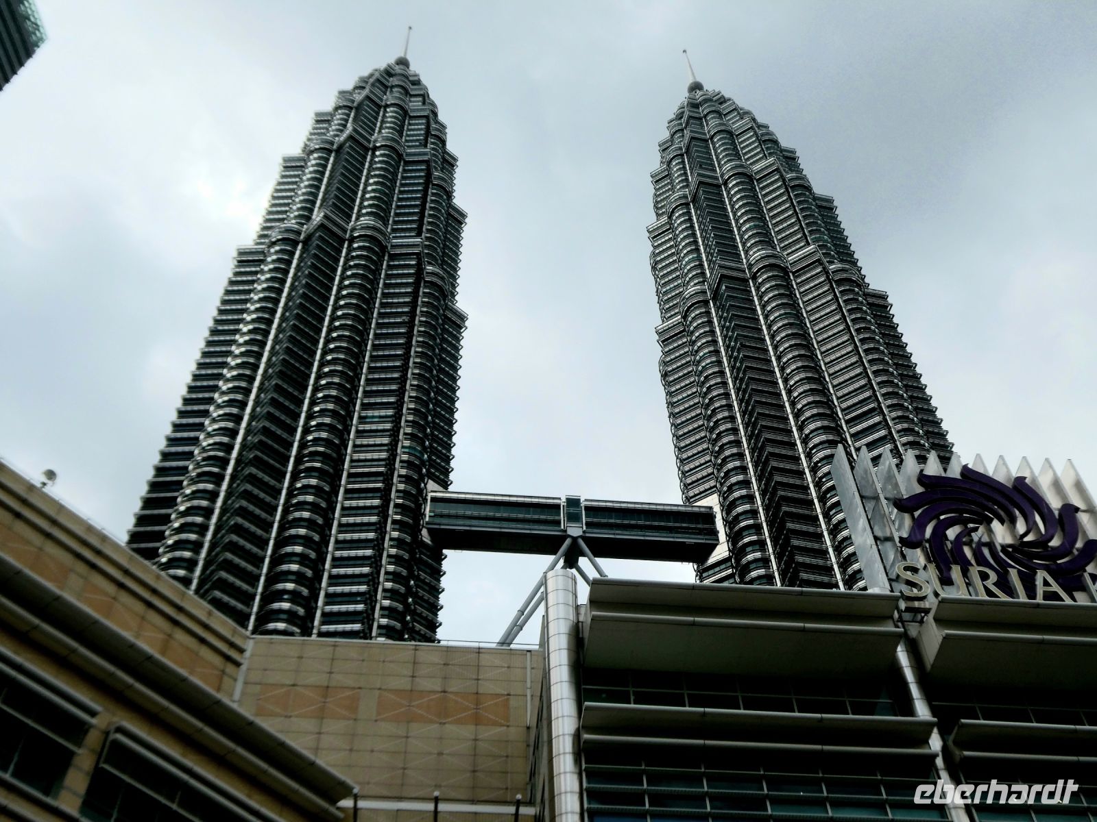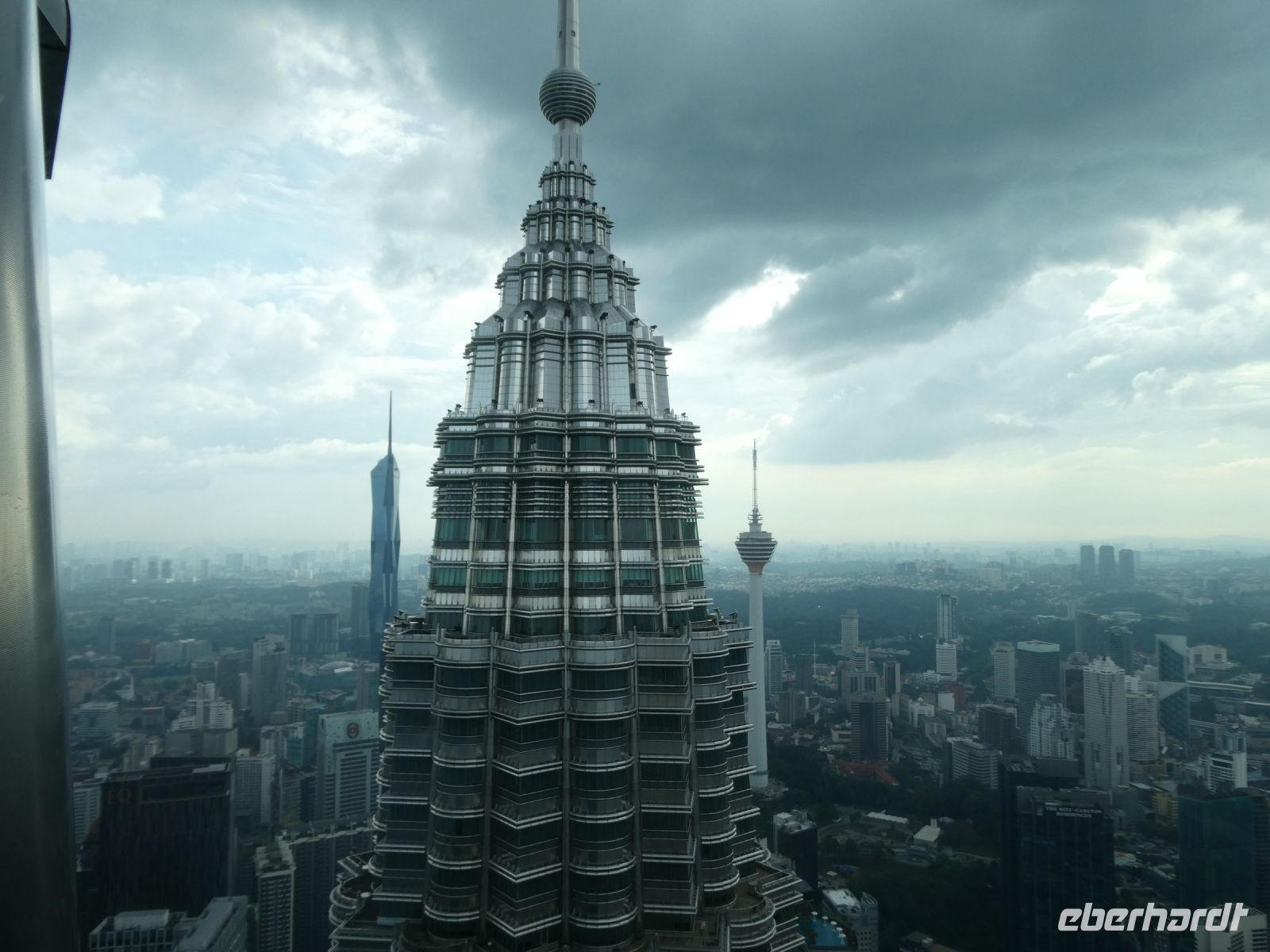 Anschließend fahren wir nach Kuala Lumpur zurück zu einer Stadtbesichtigung. Wir sehen jetzt die historischen Bauten, welche wir schon in der Nacht, mit Richard beleuchtet im Dunkeln, kennenlernen durften bei Tag. Wir erfahren von Zul etwas über die Geschichte von Kuala Lumpur welches ja 1857 aus einem Zinnposten hervorgegangen ist. Chinesische Minenarbeiter und Händler siedelten sich hier an. Als Gründungsvater des modernen Kuala Lumpur gilt der Chinese Yap Ah Loy. Später übernahmen die Briten die Macht, was sich auch im Stadtbild mit den kolonialen Gebäuden und den Kricketfeld niederschlägt. Nach dem ausführlichen Stadtrundgang fahren wir zu den Petronas Towers um uns Kuala Lumpur aus luftiger Höhe anzuschauen. Sie waren mit 452 m Höhe zeitweilig die höchsten Gebäude auf unserer Erde, wurden dann aber von den Emiraten überflügelt. Wir fahren mit den Fahrstühlen und einem Umstieg in schwindelnde Höhe. Die Türme sind das Wahrzeichen der Stadt und wir haben einen wolkenreichen Rundumblick über die gesamte Umgebung.
