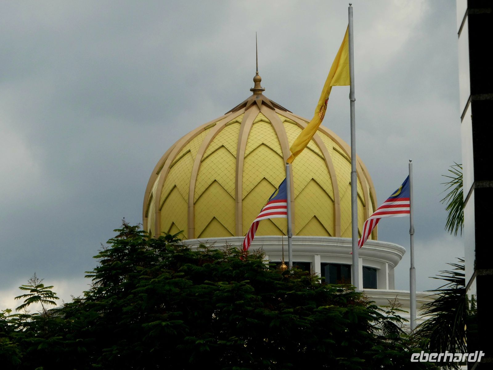 Es ist Ramadan, der heilige Fastenmonat der Muslime. Trotzdem dürfen wir die Moschee besuchen. Allerdings müssen die Frauen und auch einige der Männer ein graues Kleid überziehen um dem Anstand Genüge zu tun. Es ist eine ruhige Atmosphäre und wir können die Gebetsnische in Richtung Mekka in der Hauptgebetshalle mit Kuppel betrachten. Hier in Malaysia wird betont, dass sich alle religiösen Gruppen gegenseitig achten und respektieren, was in der heutigen Welt ja wirklich eine Seltenheit darstellt. Wir bekommen langsam den Eindruck dass es tatsächlich so ist.