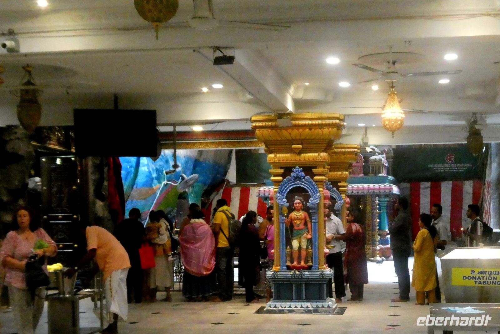 Hier heisst es ebenfalls Schuhe ausziehen, wenn man die einzelnen Tempel, die hauptsächlich der Gottheit Murugan gewidmet sind, betritt. Überall werden Räucherstäbchen angezündet und auch Opfergaben in Form von Lichtern oder Obst werden dargebracht.