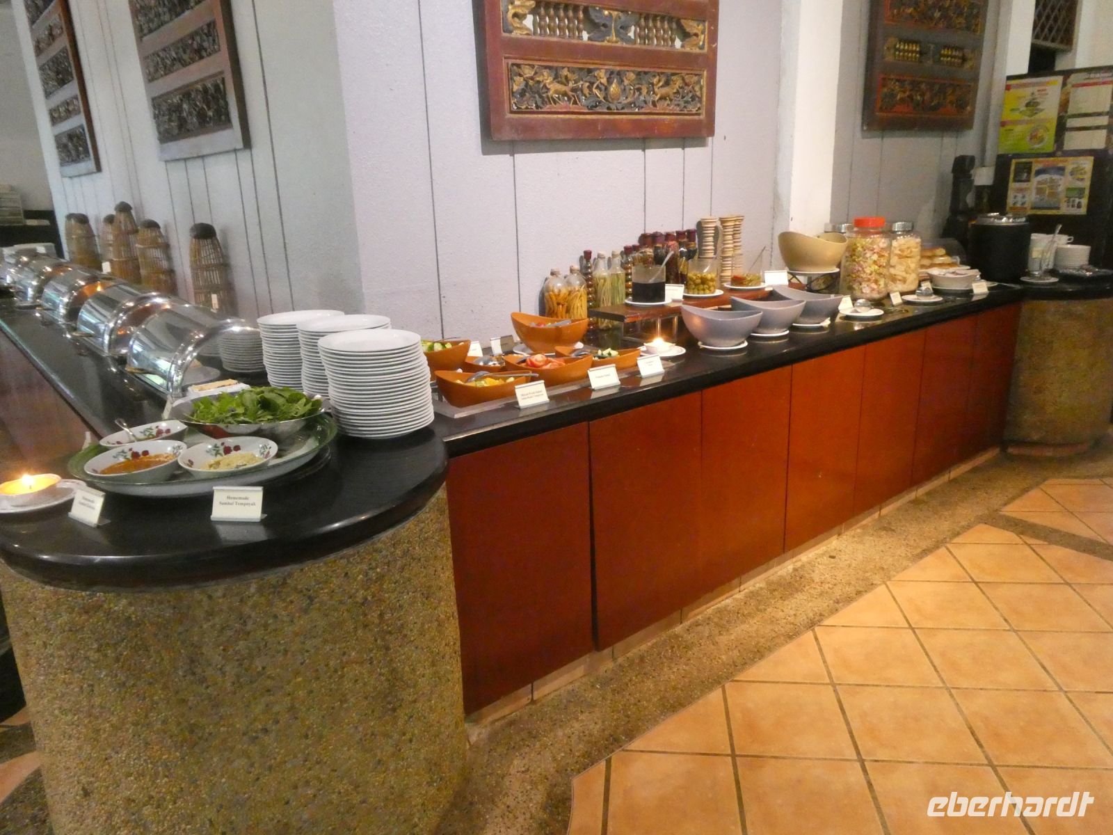 Das Frühstück heute ist sehr typisch für den asiatischen Geschmack. Allerdings fehlt Wurst wie wir sie kennen, was aber angesichts des Klimas hier angemessen ist. Hier wird morgens schon deftig gegessen und sogar scharf und salzig.