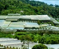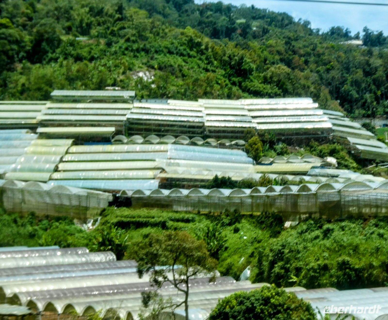 Um die Mittagszeit kommen wir in der gemäßigten Zone an. Zahlreiche Gewächshäuser säumen die Straße. Es werden Obst und Gemüse und neuerdings auch Blumen kultiviert.