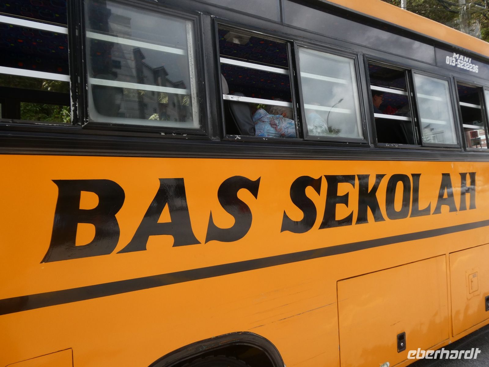 Um zu der angekündigten Teeplantage zu kommen müssen wir in einen Schulbus umsteigen, da die Straße zu eng und kurvig für unseren Bus ist.