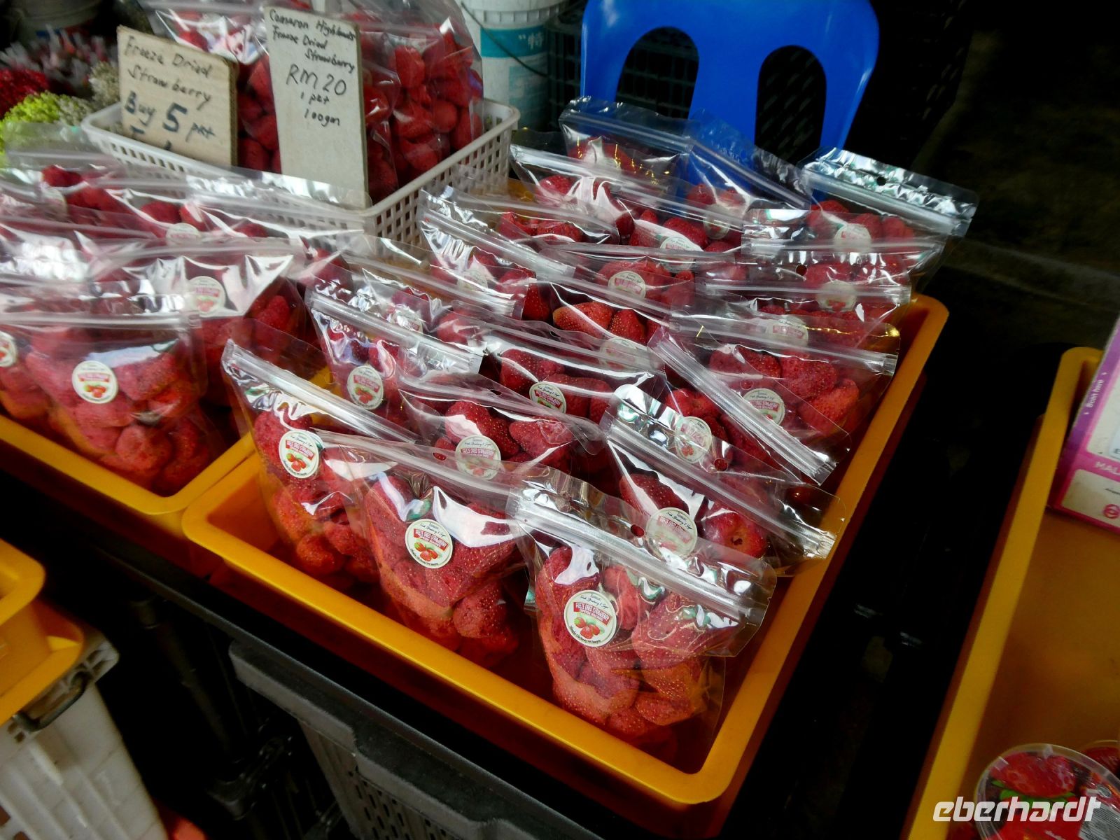 Auch Erdbeeren, die ein wichtiges Produkt der Region sind, werden sowohl in frischer als auch in getrockneter Form angeboten.