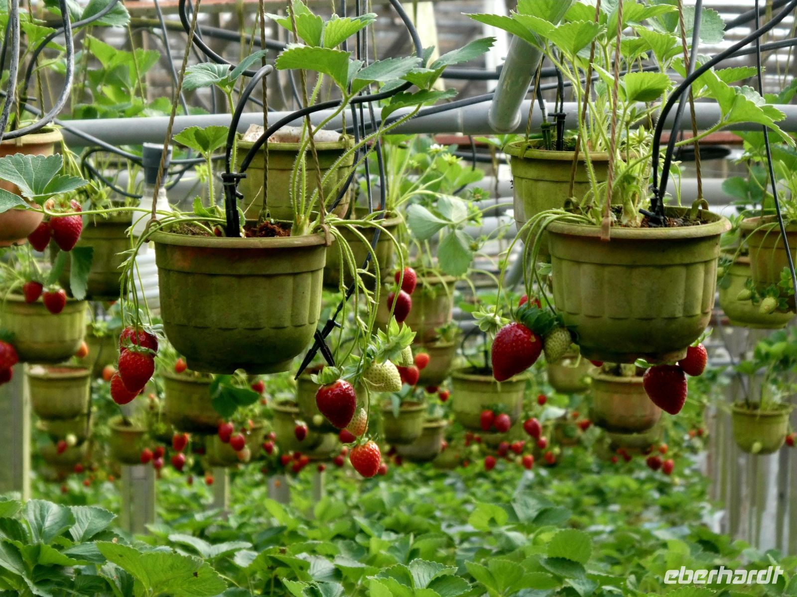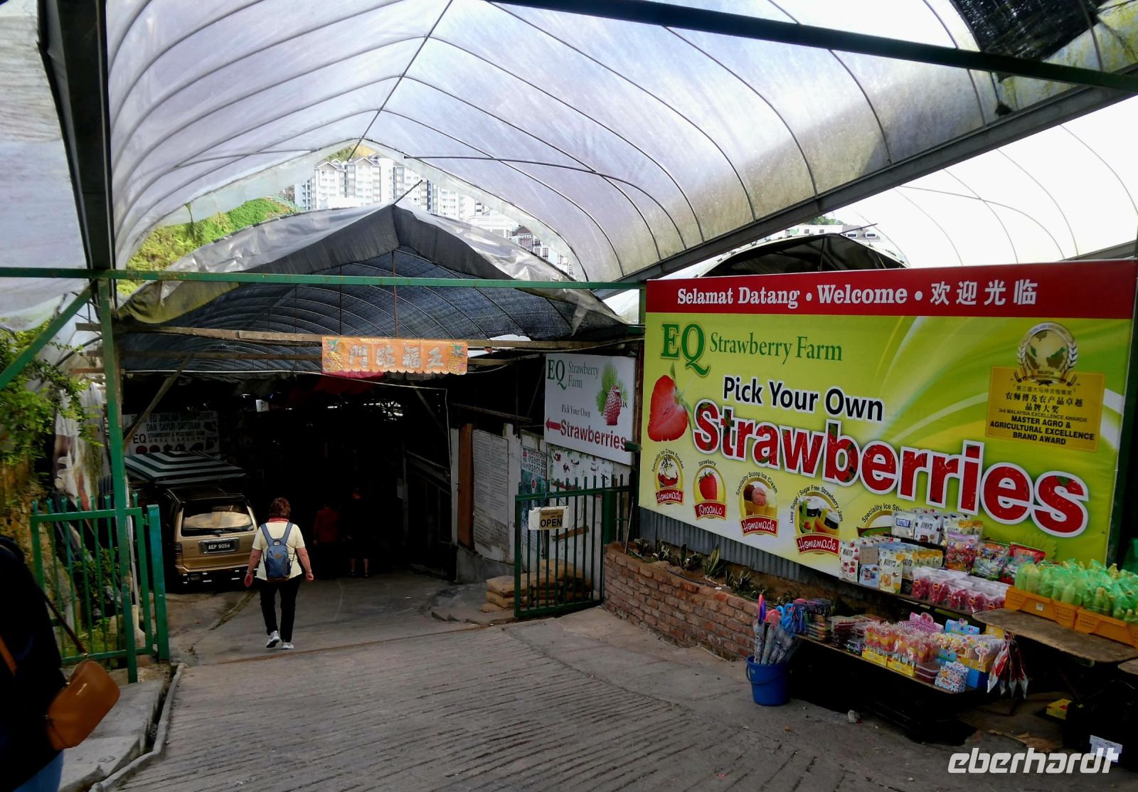 Nach dem Gemüsemarkt laufen wir zu einer Erdbeerfarm, wo man selber Erdbeeren pflücken kann, wenn man das möchte. Hier sehen wir wie die Erdbeeren in Blumentöpfen kultiviert werden, was wohl von den Niederländern eingeführt wurde.