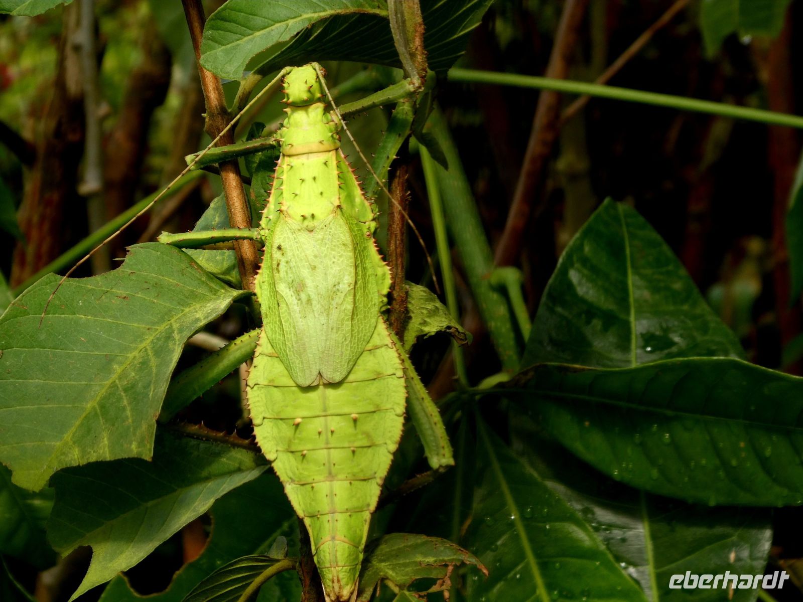 Es geht über gut angelegte Holzwege und wir bekommen verborgene Tiere gezeigt und erklärt an denen wir vorbeikommen. Die meisten von ihnen sind gut getarnt und nicht so leicht zu entdecken. Aber unsere Führer spüren sie in kleinen Winkeln oder Höhlen auf. Oder aber sie sind gut als Stöckchen getarnt wie die Stabinsekten. Wir müssen schon genau hinschauen. Es ist die Zeit der Insekten, Spinnen und Scorpione. Auch eine grüne Baumschlange lauert auf einem Ast.wir. Nach diesem kurzweiligen Spaziergang gehen wir , von den Stimmen der Nacht begleitet, schlafen.