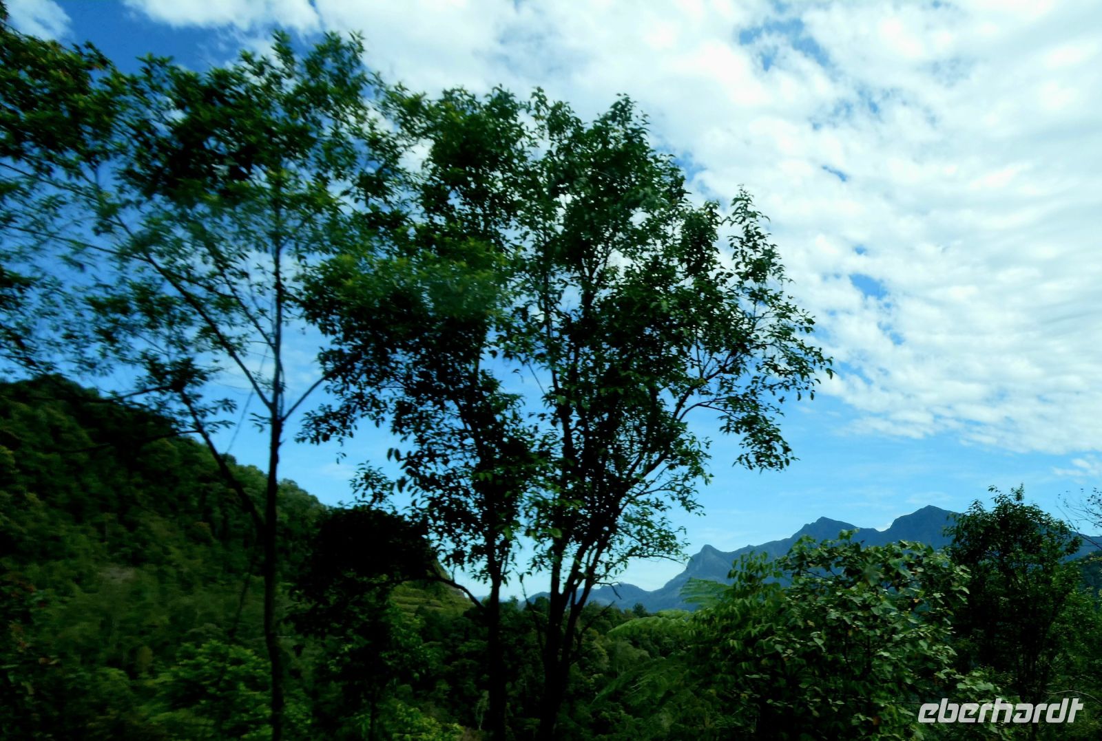 Stetig führt die Straße bergan und windet sich in zahlreichen Kurven. Auch hier gibt es wieder viele Ölpalmen-Plantagen und Lastwagen auf denen die Früchte transportiert werden.
