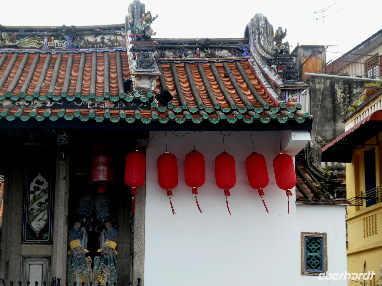 Weiter geht die Fahrt in den Bezirk wo bekannte Chinesen Georgetowns als Erbe interessante Häuser hinterlassen haben. Glücklicherweise wird dieses kulturelle Erbe geschützt und die Häuser renoviert. Wir besuchen den Tempel und das Haus des bekannten chinesischen "Khoo Kongsi Clans" der in die Geschichte Südostasiens verwoben ist. Auch die Bedeutung dieser Clans für die Identität kommt uns ins Bewusstsein. Chinesische Kultur ist hier in Südostasien bis in die heutige Zeit erhalten, in China durch die Kulturrevolution fast zerstört worden.